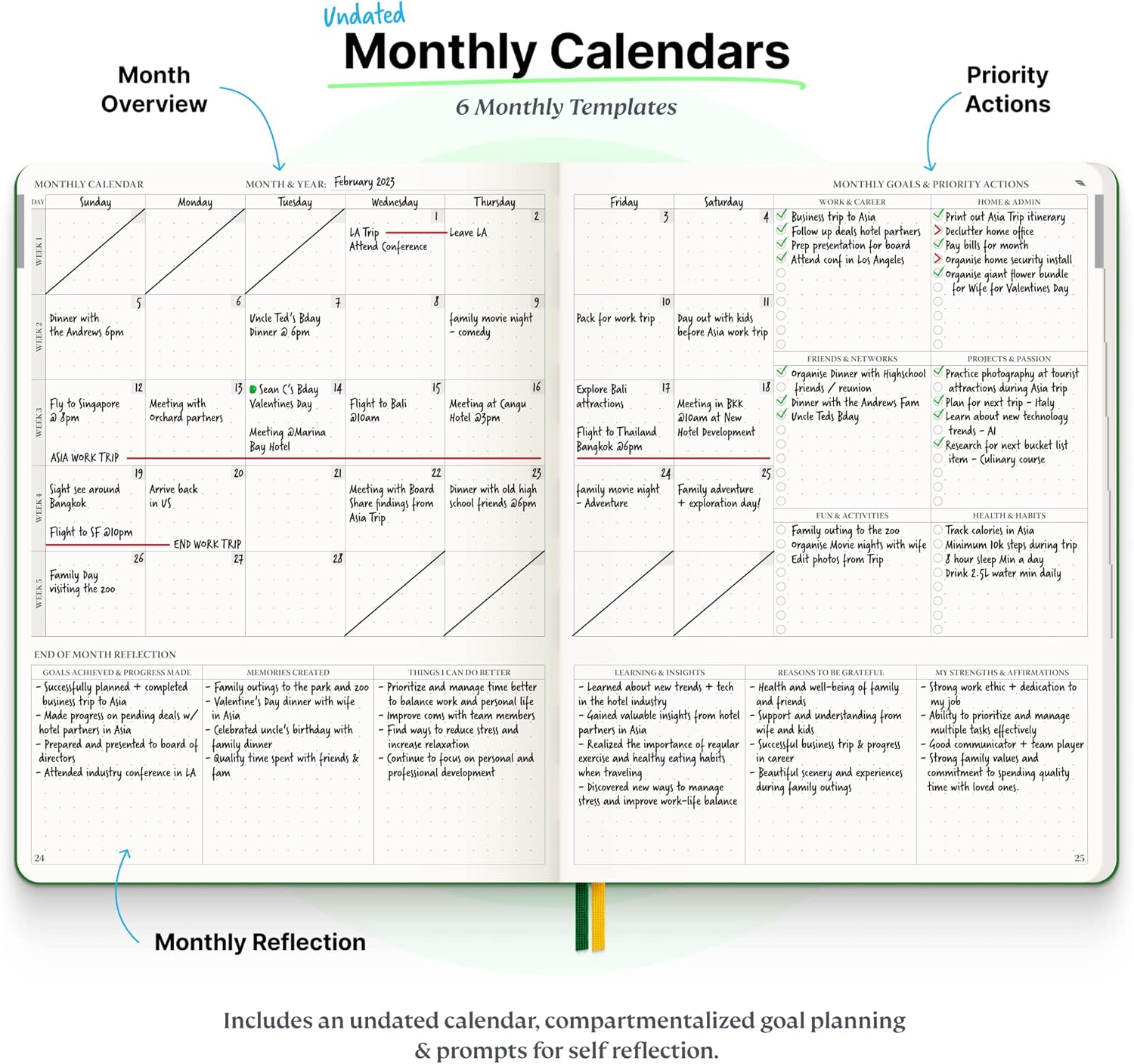 Purpose Planner Undated Monthly Weekly Daily Productivity Journal 2023 Optimised Life, Goal Setting & Business Tool for Academic Student, Professionals, Mums - Leather Day Organiser Notebook