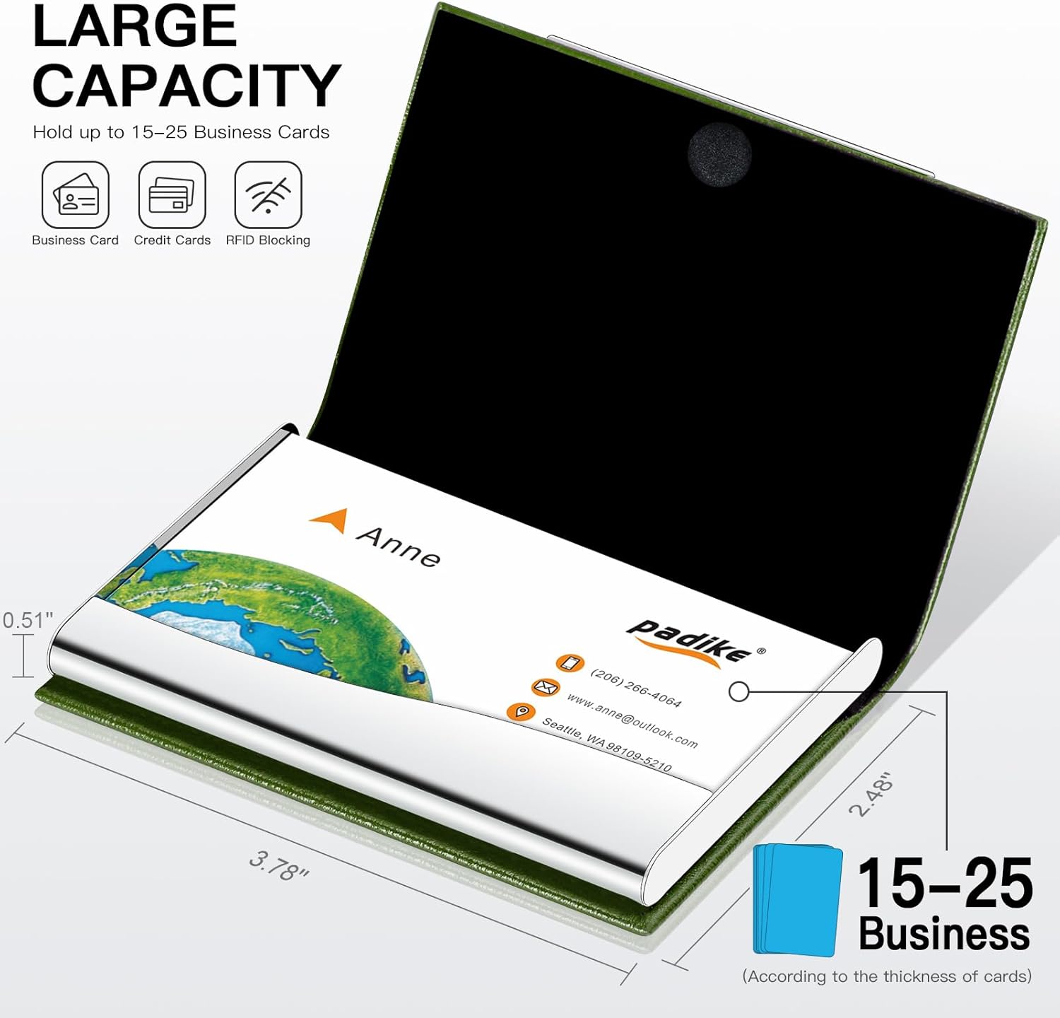 Padike Business Card Holder, Business Card Case Professional PU Leather & Stainless Steel Multi Card Case,Business Card Holder Wallet Credit Card ID Case/Holder for Men & Women. (V-Green)