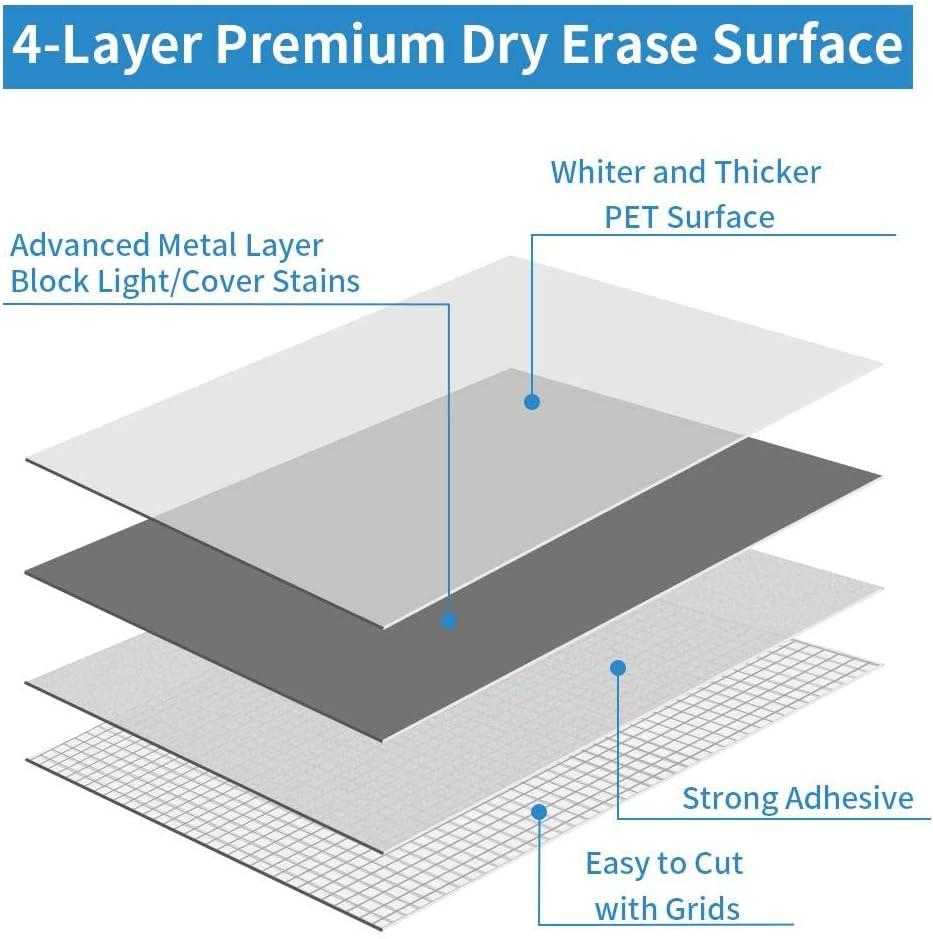 - NO RESIDUE AFTER 2 MONTHS β The dry erase surface is easy to remove and the markings are easy to clean without any residue even after 2 months due to the premium PET material.