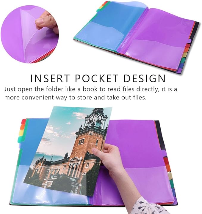 - ★Expandable&easily access: Different from other file folders, this expandable file folder helps to save more space in your crowded desk; Every color page with double pocket, it means 24 pockects in the folder. The insert bag design, makes easily to access to all files.