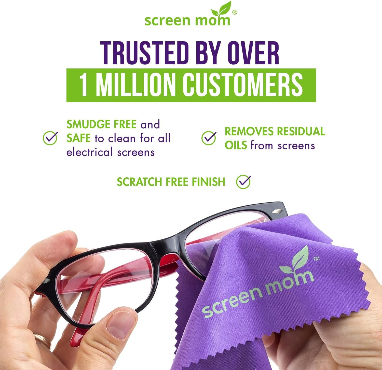 - STREAK-FREE SHINE FOR CRYSTAL CLEAR SCREENS: These handy 6""x7"" (15cm x 18cm) Screen Mom screen cleaning purple microfiber cloths deliver a spotless, streak-free shine that leaves your screens looking brand new. Ideal for HDTVs, laptops, tablets, and smartphones, each monitor cleaning cloth removes smudges, and fingerprints in a single swipe. Use alone or with your Screen Mom Screen Cleaner Spray for the ultimate clean on all your devices.