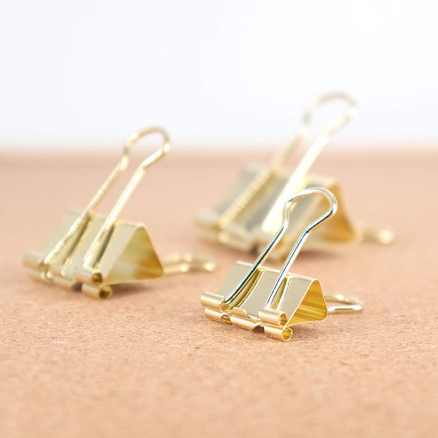 - FEATURE : The binder clips are made of metal, durable and re-usable, Have extra strong hold not overly hard to open, without the risk of slipping or falling out.Clips spring back into when removed. Compare with the traditional black binder clip,the bright gold color can make you feel special and fun.
