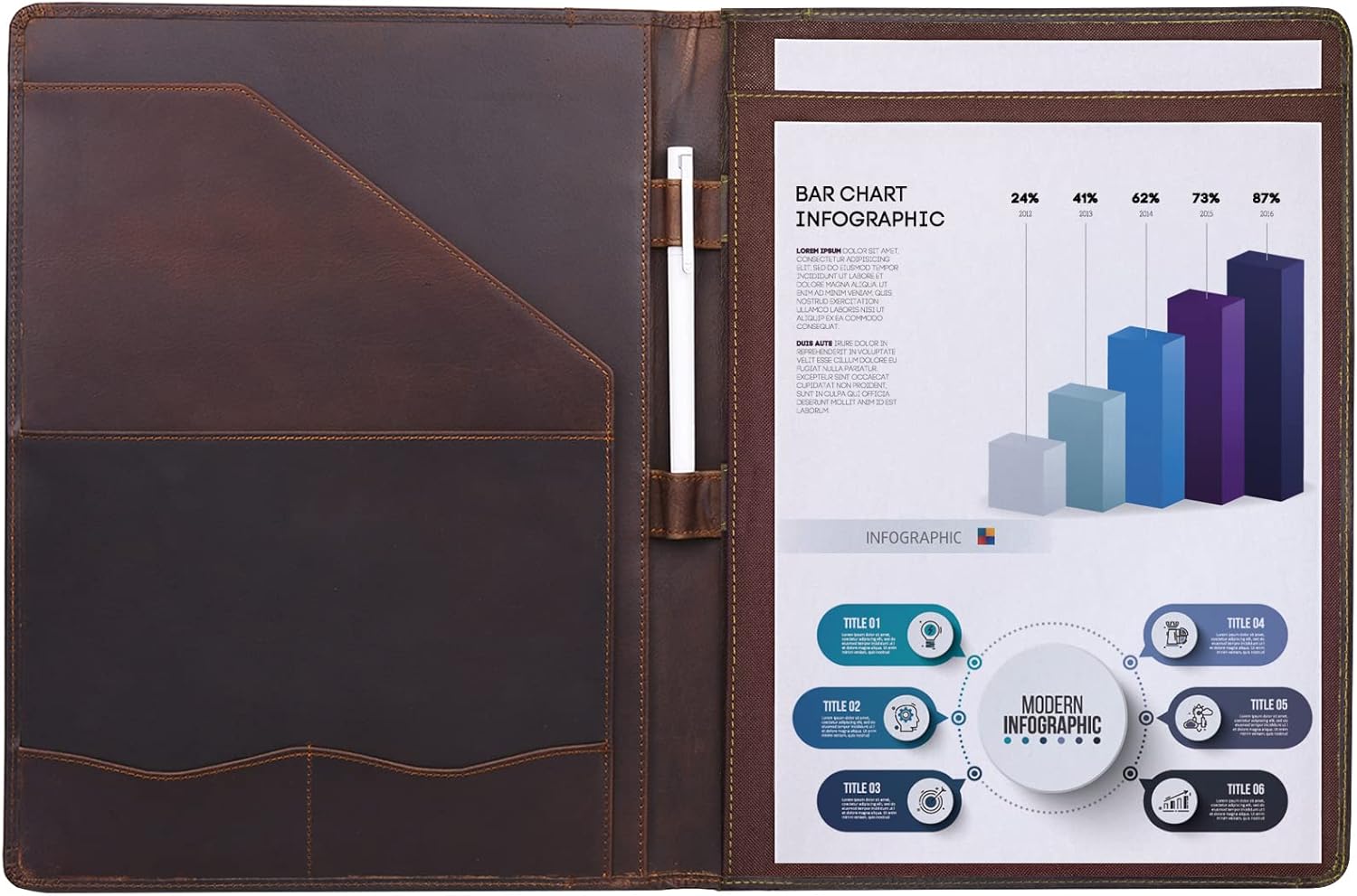- Never fumbling around again: With our professional leather portfolio, you may organize the letters, envelopes, the loose pages, the legal pad, important documents,business portfolio, papers, print-outs, sheet, leaflets, business credit cards, photos & all sorts of other paper stuff easily. Just click "Add to Cart" button to get this fantastic business padfolio right now, and you will wave your hand to work clutter.