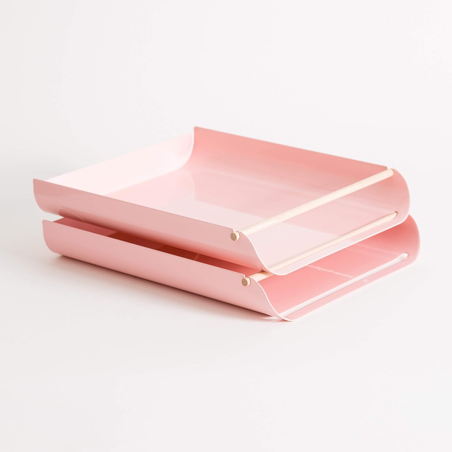 U Brands Metal Paper Tray, Letter Size, Desktop Accessory, Arc Collection, Pink, 3552A02-06