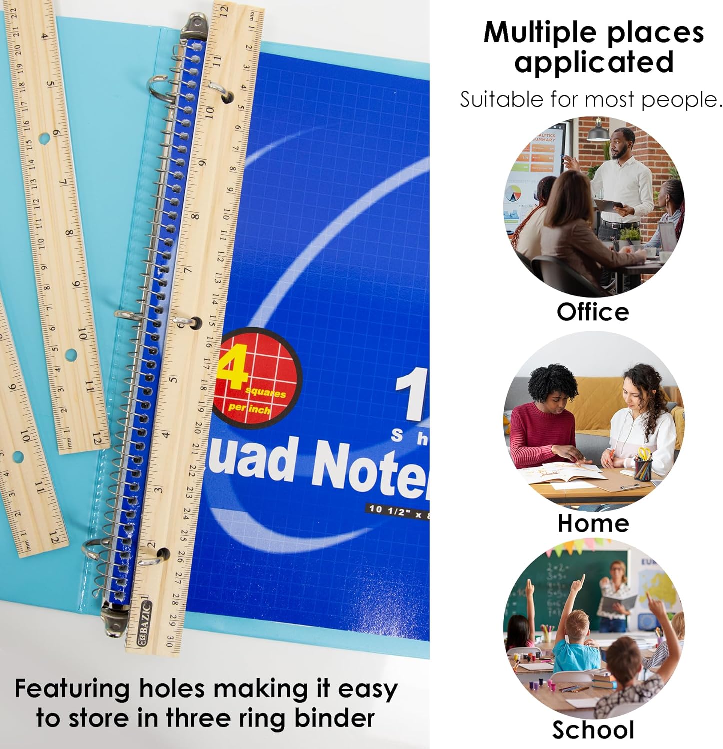- β DOUBLE-SIDED MEASUREMENT. Let measuring be the least of your worries with our 12inch/30cm natural wood ruler containing a single metal edge and featuring holes making it easy to store in three-ring binder!