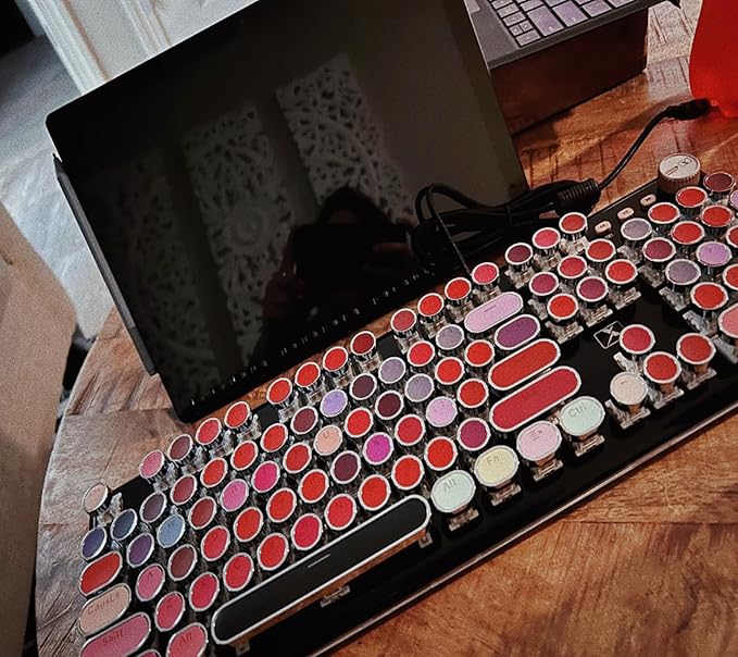 - 【Mechanical Blue Switch Gaming Keyboard】 - Mechanical Blue Switch Gaming Keyboard (Cherry Blue Equivalent) for ultimate gaming performance. Retro keycap looks like a classical typewriter, brings you comfortable typing feeling & stable clicking touch. The Mechanical Keyboard Keys offer medium resistance, audible Click Sound & Tactile Feedback. Sensitive and Responsive. Easy to press and fast response.