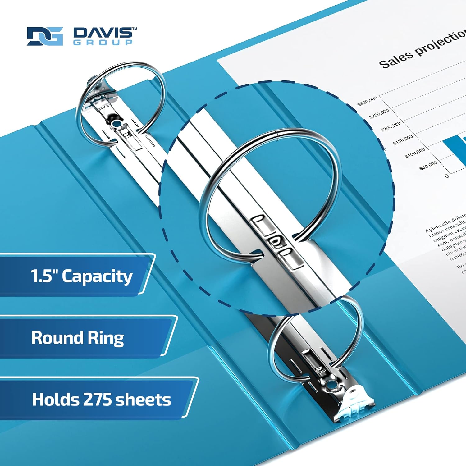 Easyview Premium 3-Ring Binders with Clear-View Covers and Round Rings, Binders for School or Office, 1.5 Inch, Pack of 6, Turquoise