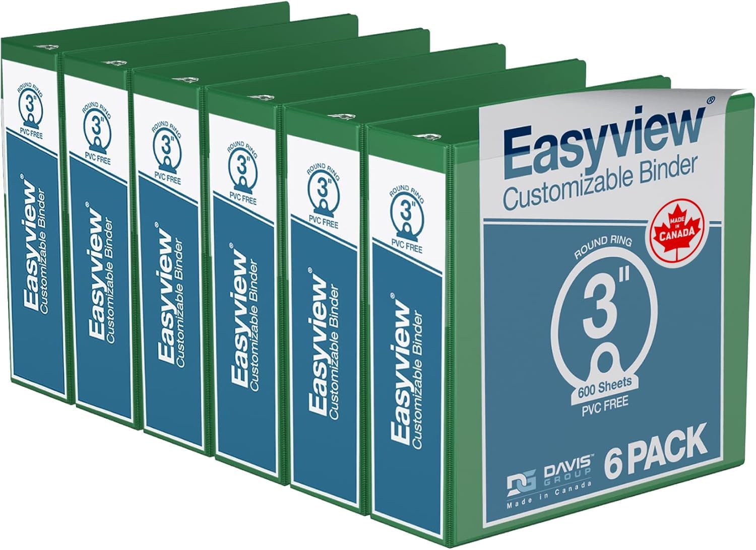Easyview Premium 3-Ring Binders with Clear-View Covers and Round Rings, Binders for School or Office, 3 Inch, Pack of 6, Green