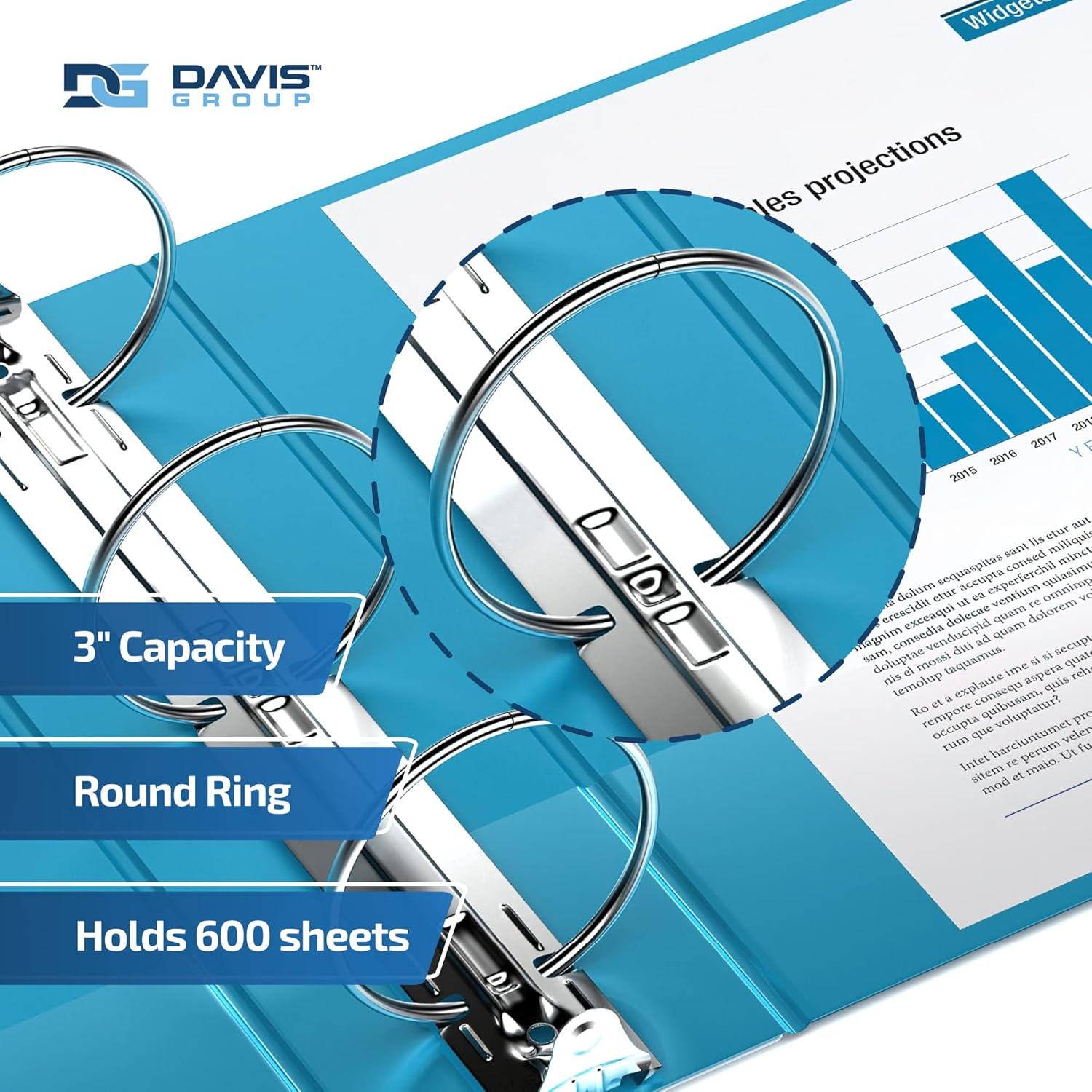 Easyview Premium 3-Ring Binders with Clear-View Covers and Round Rings, Binders for School or Office, 3 Inch, Pack of 6, Turquoise Blue