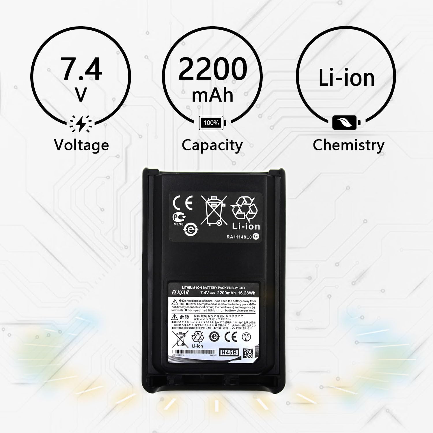 elxjar (2-Pack) 7.4V 2200mAh FNB-V104LI Li-Ion Battery Replacement for Yaesu Vertex VX-230, VX-231, VX-228, VX-234, VX-231L Two Way Radios