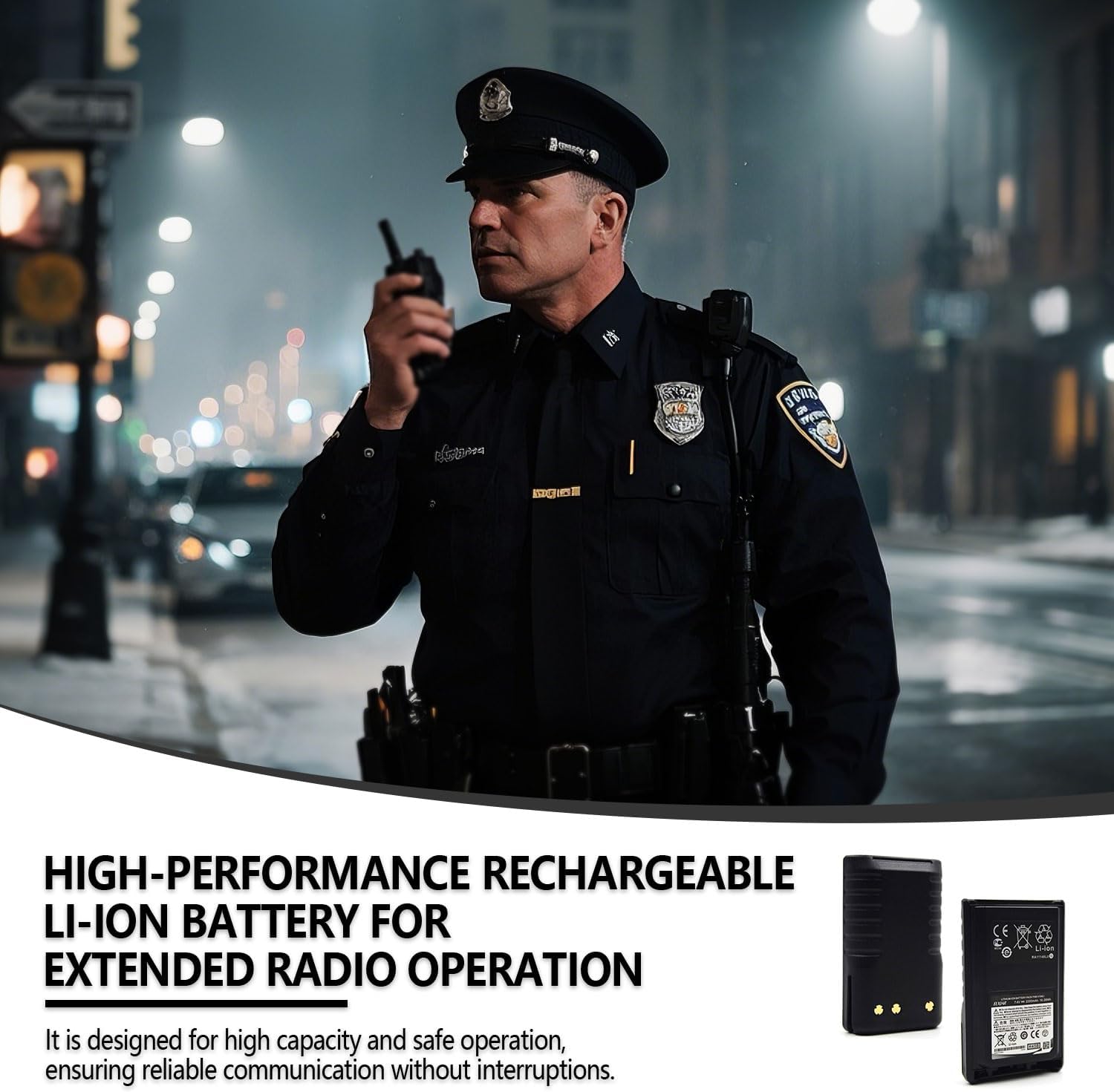 - BATTERY SPECIFICATIONS: 7.4V, 2200mAh Li-Ion battery offering high capacity for extended radio usage. Rechargeable, eco-friendly, and reliable.