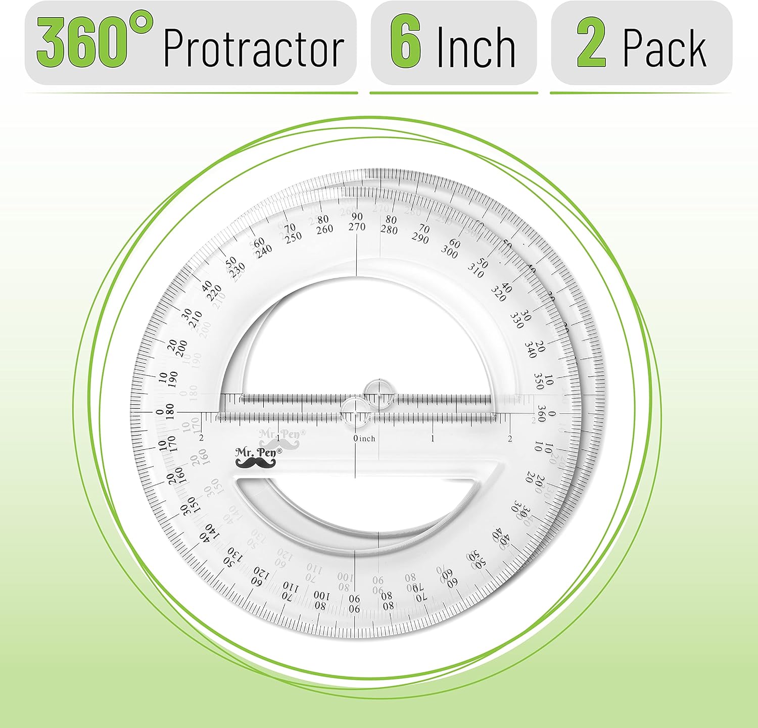 Mr. Pen- Protractor, Pack of 2, Protactor 360 Degree, Protractor Set, Protractor Ruler, Drafting Tools, Circle Protractor, Protractors Classroom Set, Large Protractor, Math Geometry Set