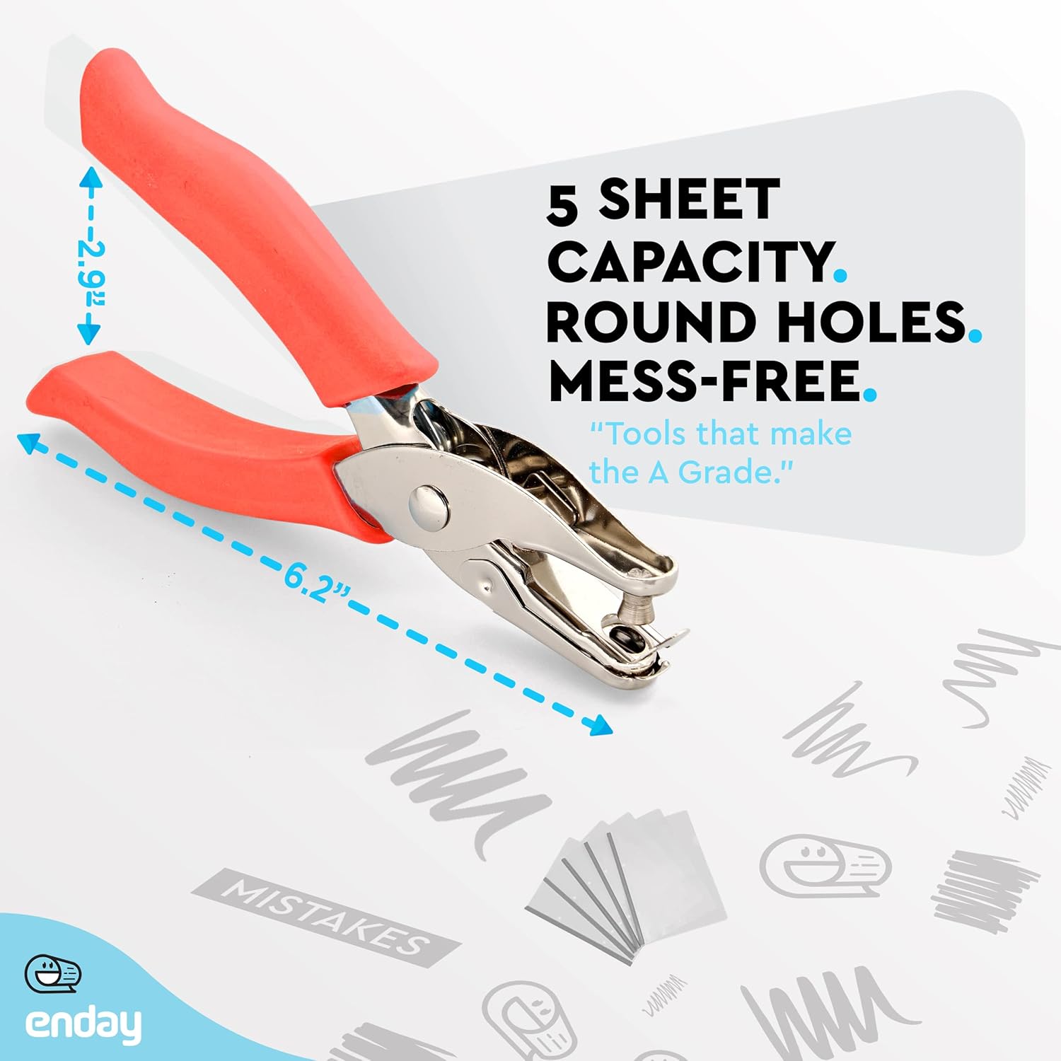 - βSpecification: Soft plastic handles provides ergonomic and comfort for repetitive use, Waste clip holder adds convenience and saves clean up time, High capacity receptacle area holds more punch outs to keep you punching longer, capacity at least 8 sheets of this paper punch; Punch hole size: approx. 1/ 4 inch in diameter