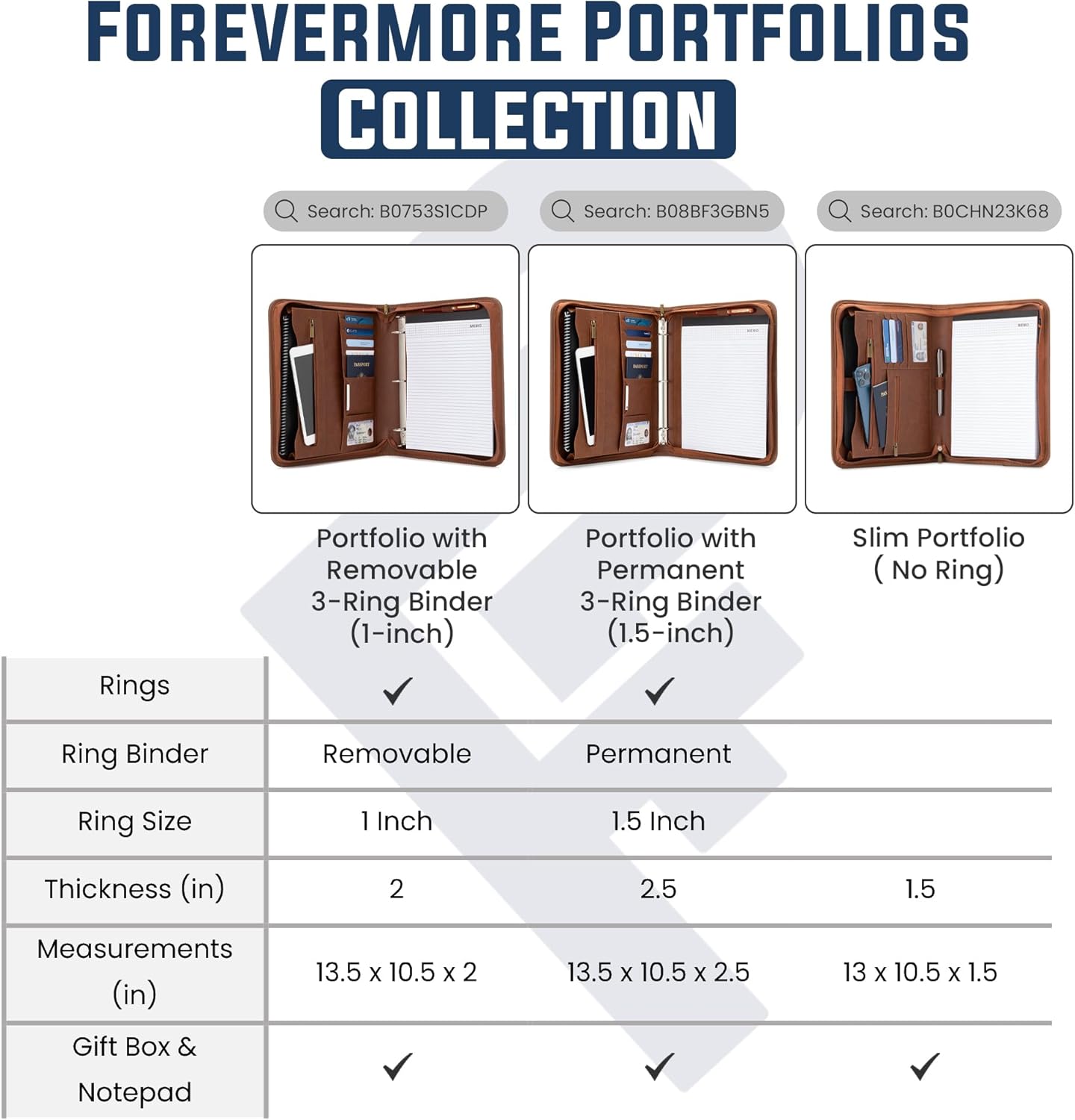 - Attention to Detail - This elegant zippered portfolio binder stands out with its luxury leather finish, fine stitching, and embossed logo detail. It also comes with a removable 3-ring binder and notepad.