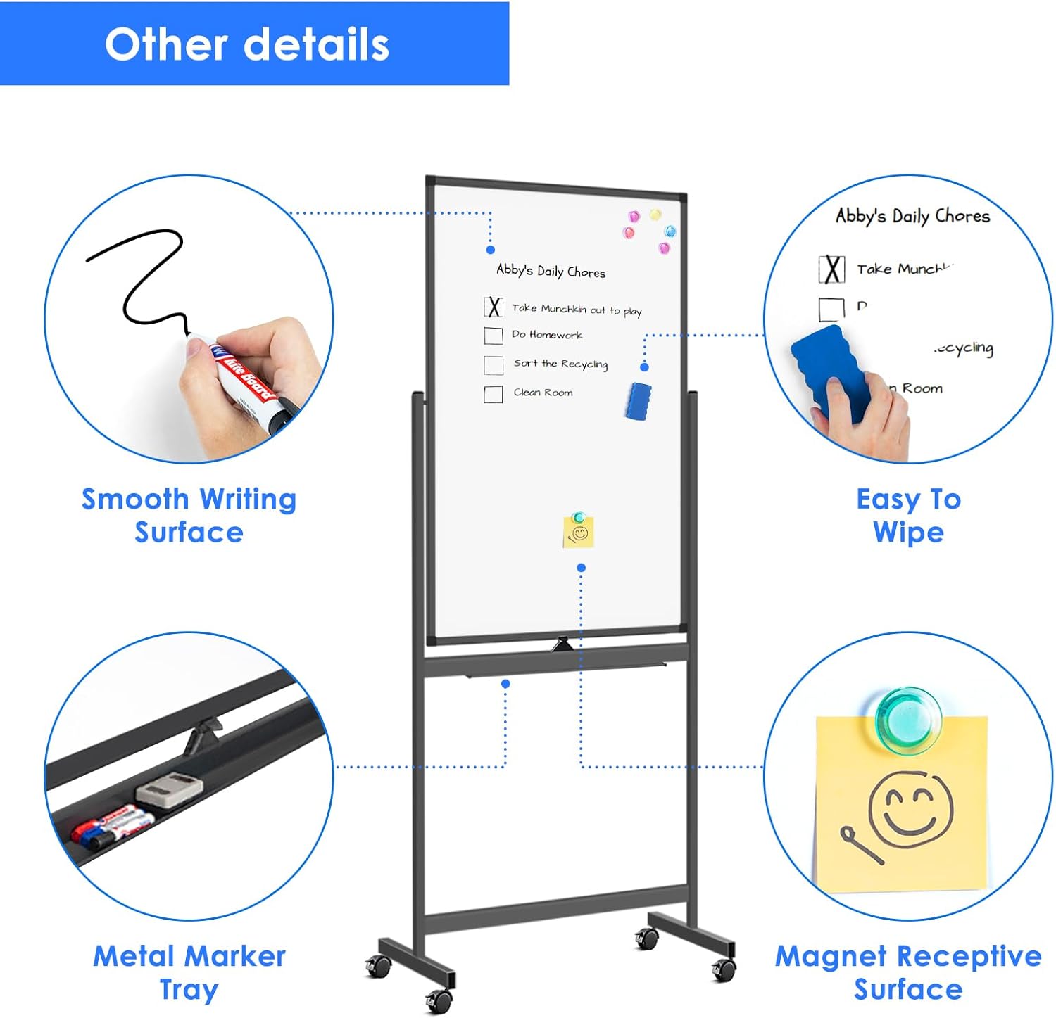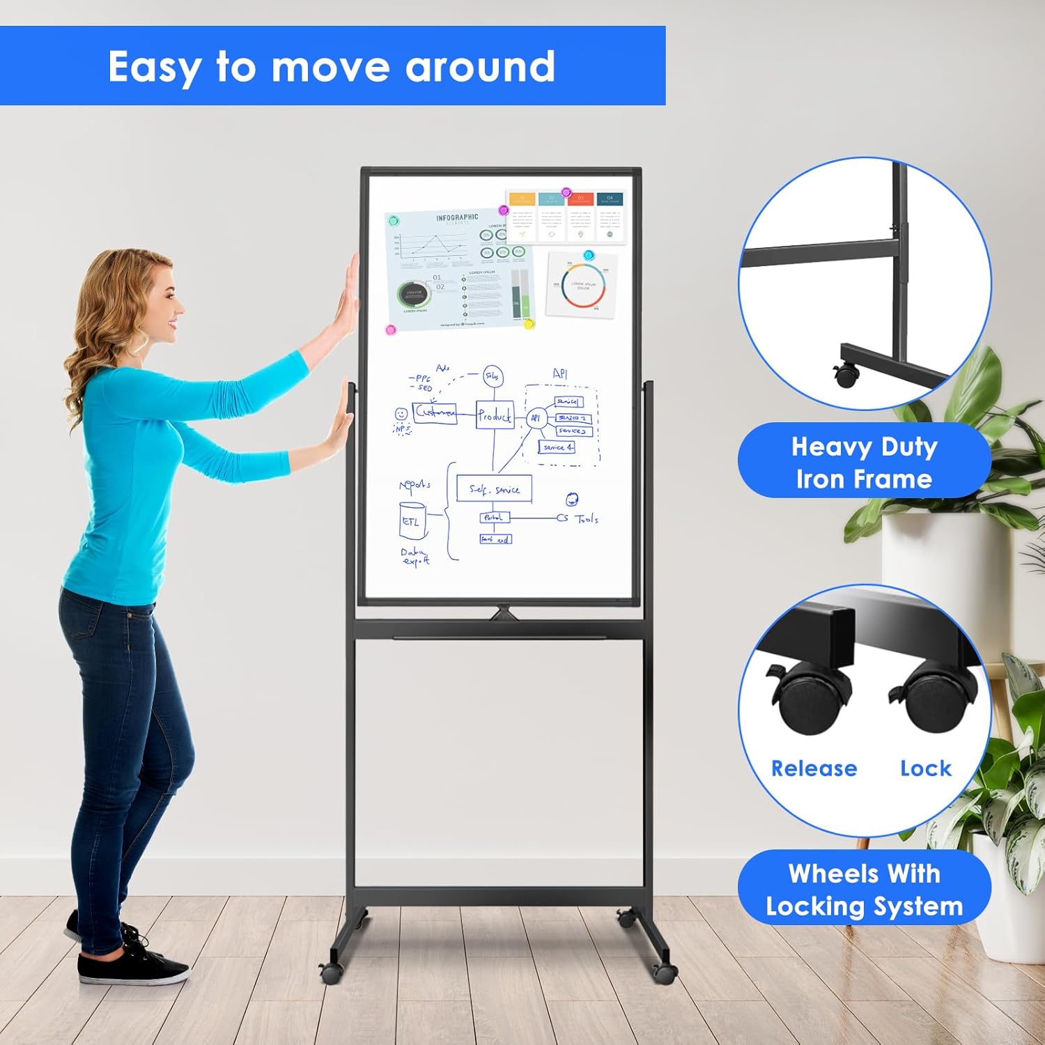 maxtek Magnetic Mobile White Board, 40 x 24 Double Sided Dry Erase Board Rolling Whiteboard, Aluminum Frame Standing Whiteboard on Wheels for Home Office Classroom (40 x 24 Black)