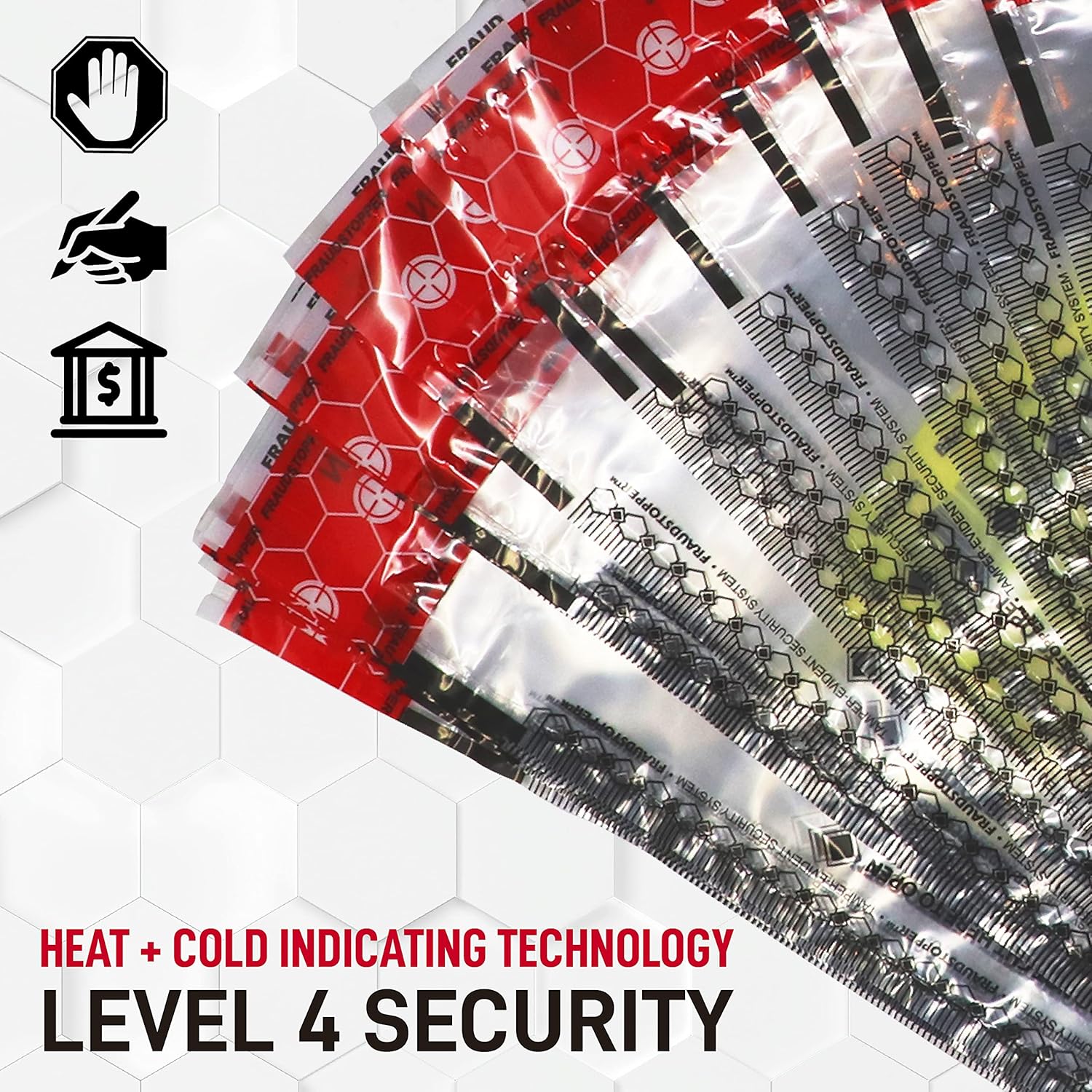 - 500 Pack of clear tamper evident bank deposit bags for proper transfer security. Made in North America using quality materials, a thoughtful design and the use of FRAUDSTOPPER technology. Bags are also made from fully recyclable plastic.