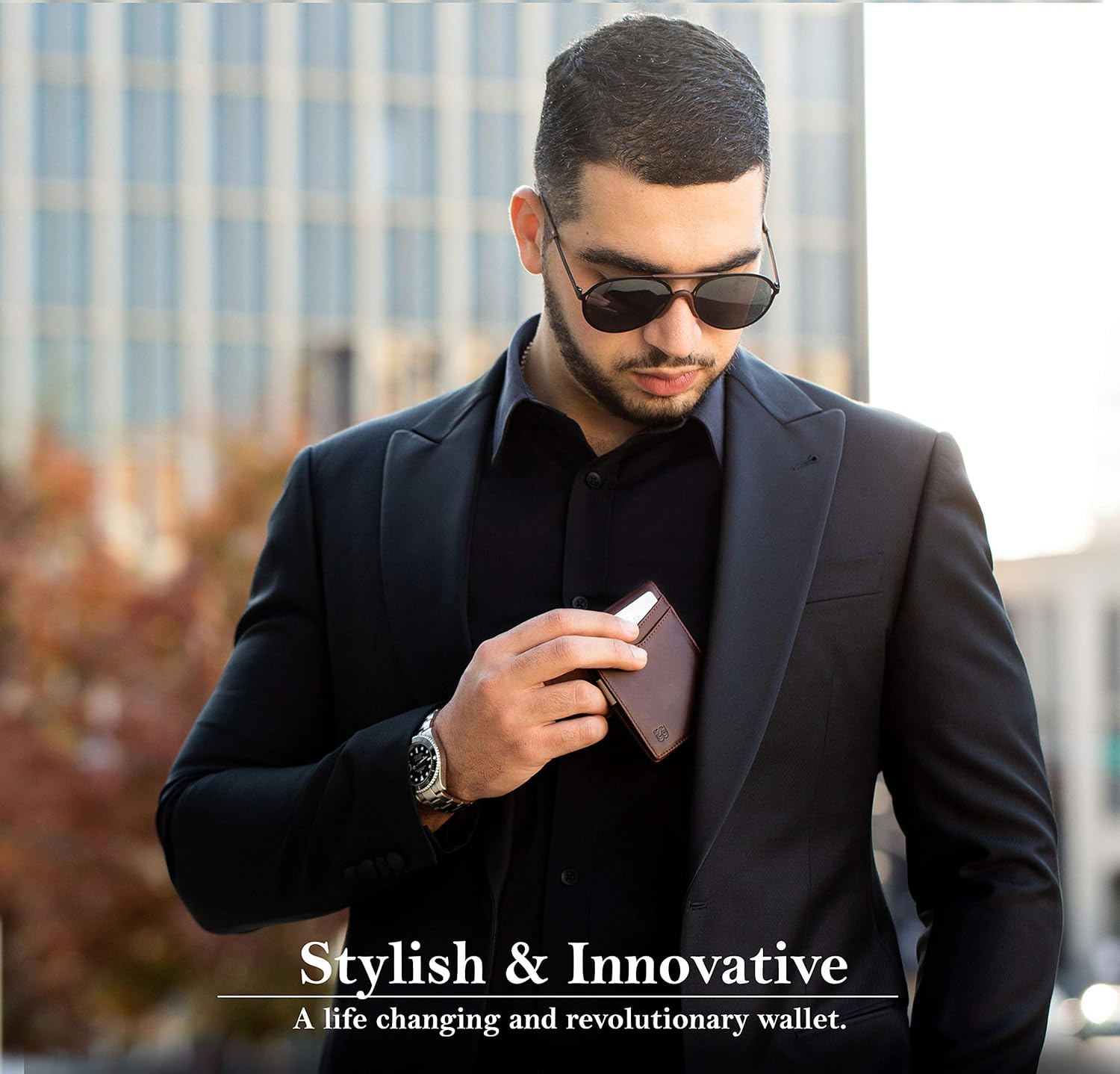 - Stylish & Practical - Functionality at its Best. A wallet that will meet your everyday needs and fits in your pocket without bulging. Two convenient outside card slots made for your most used cards, instantly have the cards you need to save time and energy. Photo ID slot located on the outside of the wallet, a smart solution to instantly access your ID. Innovative stainless steel money clip securely holds up to 15 bills, quick payments and organization made easy