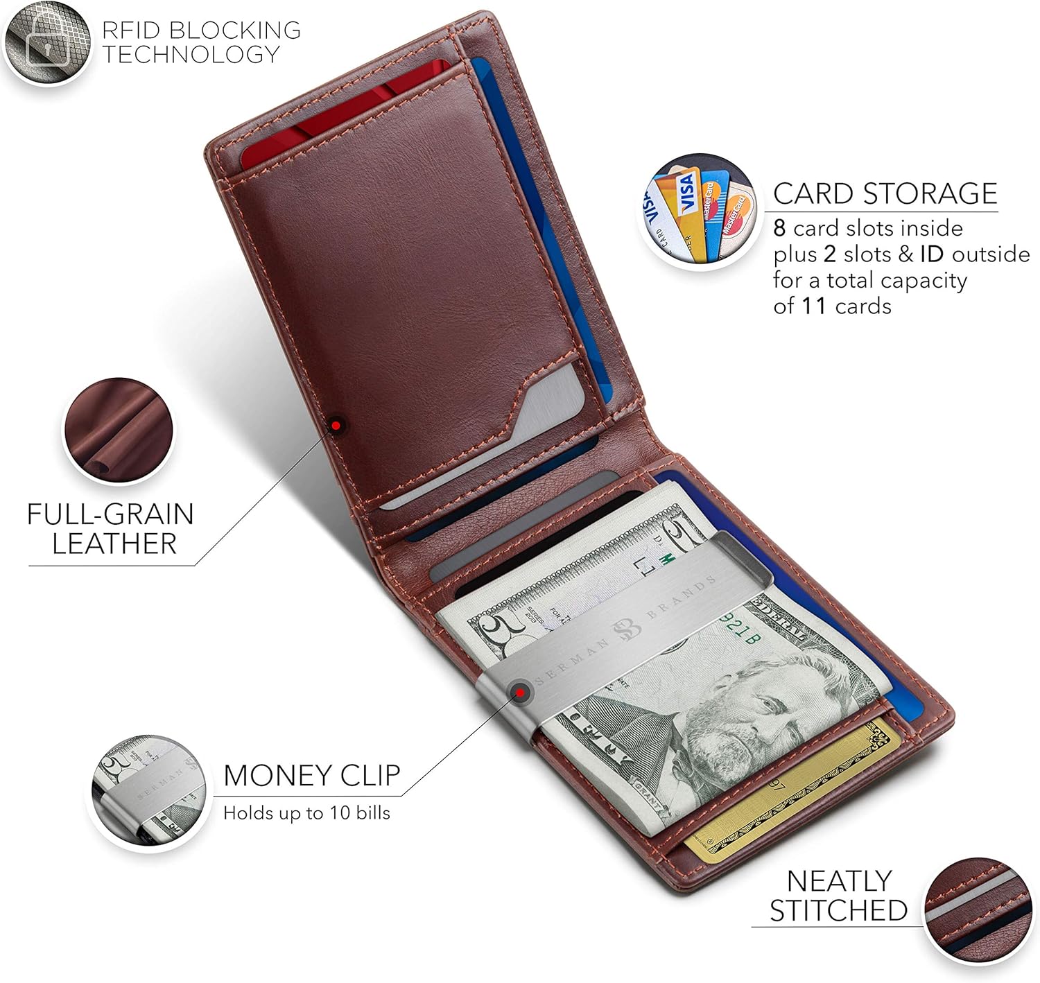 SERMAN BRANDS Money Clip Wallet - Mens Wallets slim Front Pocket RFID Blocking Card Holder Minimalist Mini Bifold