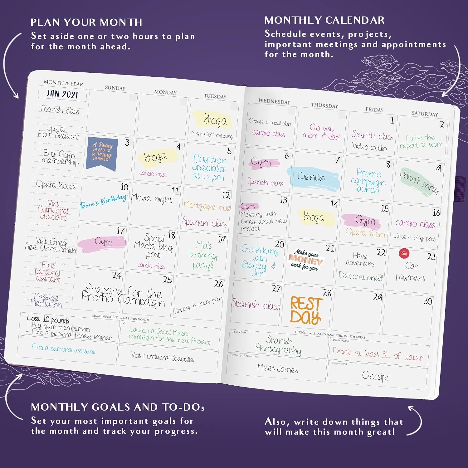 - 60-DAY SATISFACTION GUARANTEE β If you arenβt satisfied with your goal setting planner, we want to hear about any issues you have with business and personal planner and organizer. Reach out to us about appointment book, so we can provide a solution.
