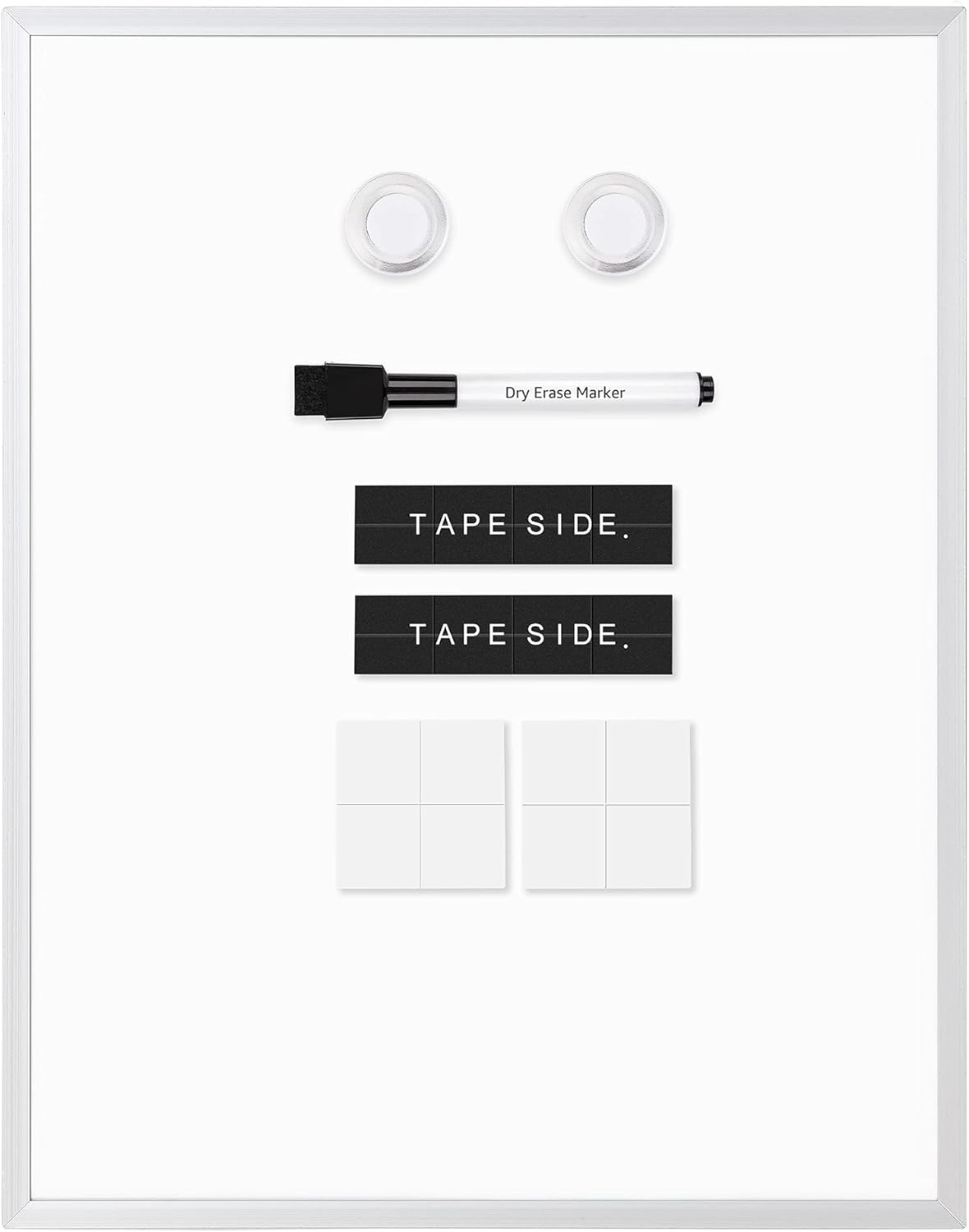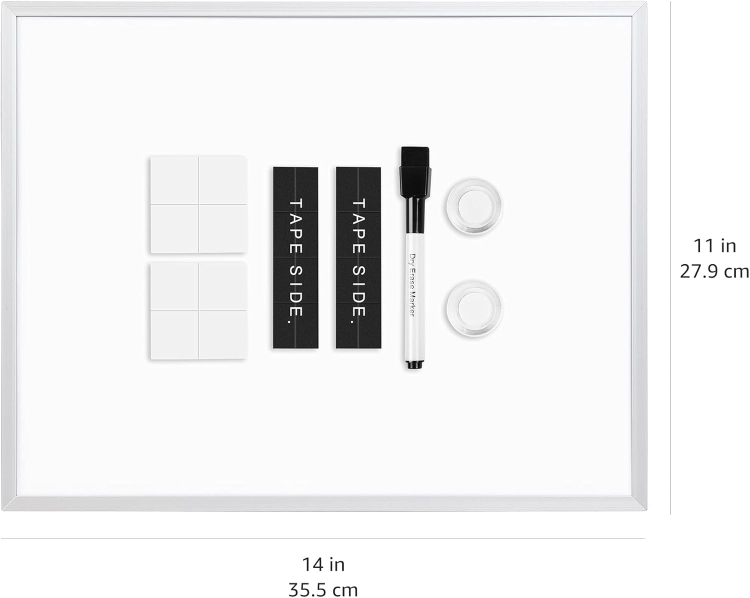 Amazon Basics Small Dry Erase Whiteboard, Magnetic Whiteboard with Marker and Magnets, 11"W x 14"H, Aluminum Frame