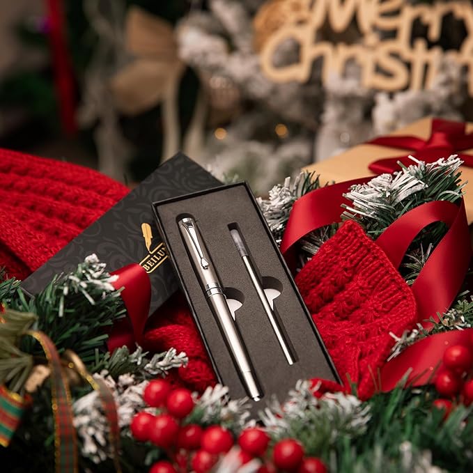 BEILUNER Silver Ballpoint Pens, Stainless Steel Body, Smooth Writing Experience, Dishwasher Safe, Gift Box with Extra Refill