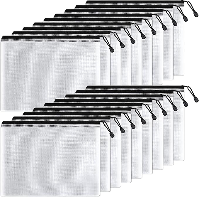 SUNEE Plastic Mesh Zipper Pouch 10x14 in (Black, 18 Packs),Extra Large Water-Resistant Zip Bag for School Office Supplies, Puzzles & Games Organizing Storage