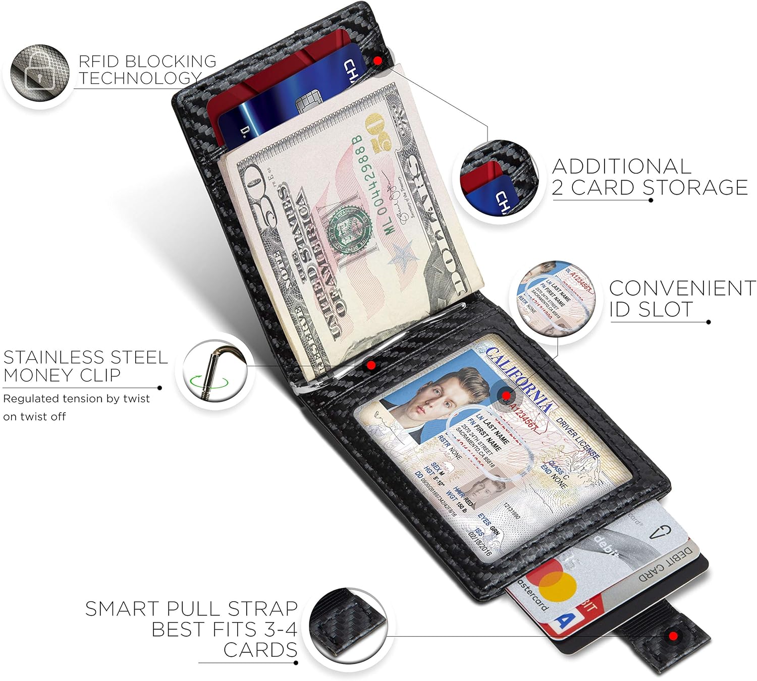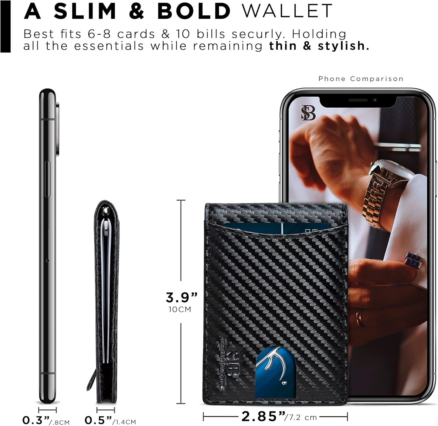 - SLIM AND STYLISH - Made with the Finest Full Grain leather, Top Grain Leather and Vegan Leather. Designed Quick Access ID Windows, Best Fits 6-8 cards plus US bills with no bulk, and a minimal Pull-tab design to reduce bulk - Wallet Size: 3.9" in. x 2.85" in. 0.5" in.