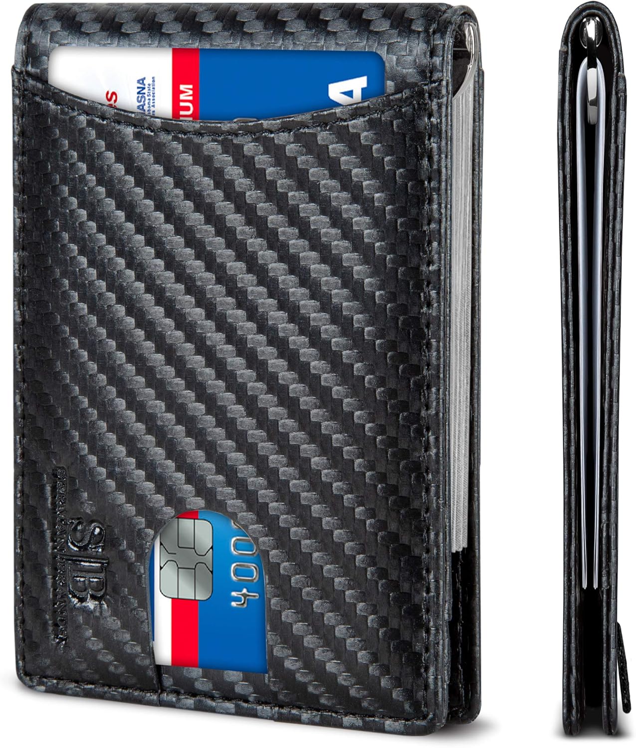 SERMAN BRANDS RFID Blocking Slim Bifold Genuine Leather Minimalist Front Pocket Wallets for Men with Money Clip Thin Mens