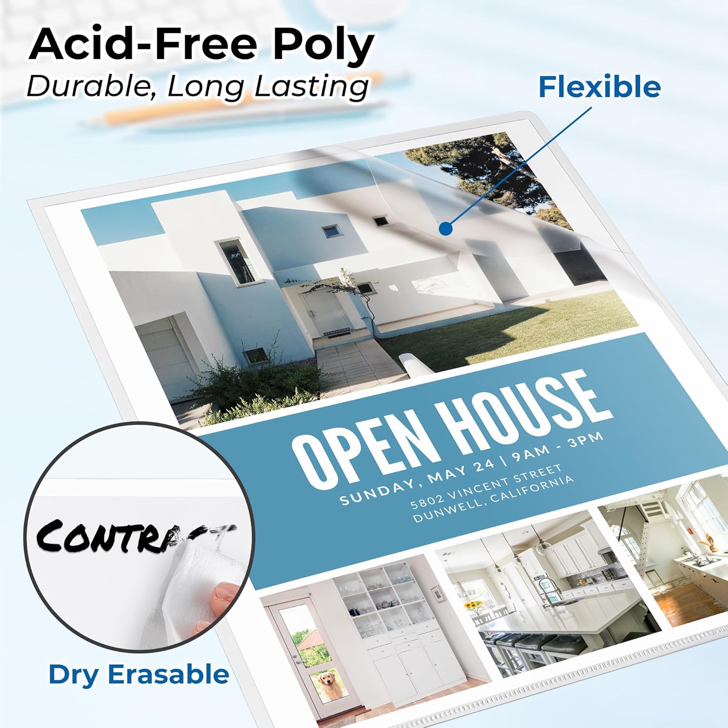 - Stay Organized: Plastic Sleeves are made of PVC-free poly plastic. Write-on file jacket is dry erasable, easy to clean. Acid-free, archival quality, no-copy transfer, no ink lift-off.