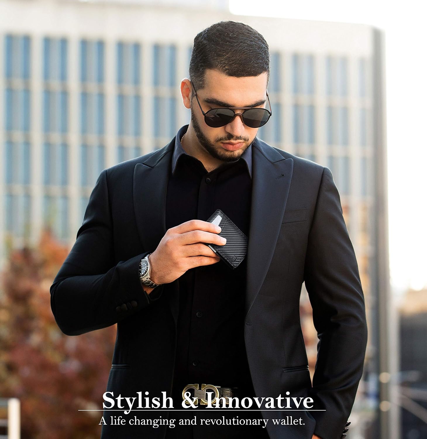 - Slim your Pocket - This slim wallets for men reduces bulk with an efficient minimalistic design that makes everything easier. Best fits up to ten credit cards, an ID plus bills. Total of 11 available card slots including two secret pockets. Perfect for carrying debit, credit and all other cards. Store cash using the innovative stainless- steel money clip. Wallet Size: 4.3 inches x 3.1 inches