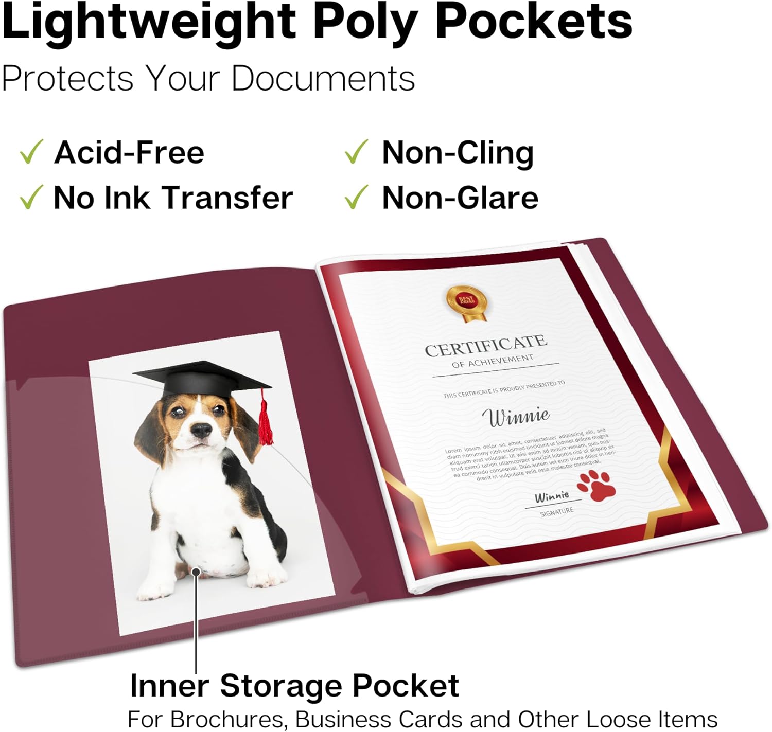 - DURABLE CONSTRUCTION, BUILT TO LAST: Premium plastic covers, reinforced binding resist tearing. Non-glare poly sleeves are dirt and moisture resistant, for a professional appearance every time.