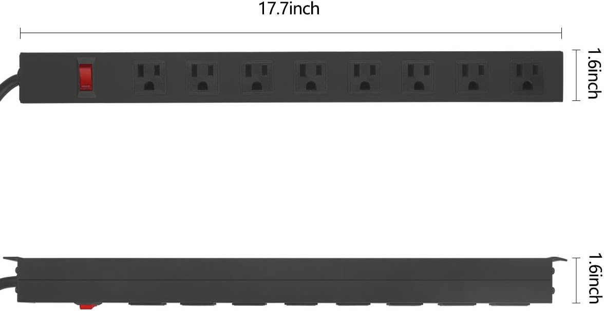 - Wall Mount Power Outlet Strip: Multiple protection system, power strip with switch and built-in 1200J surge protector MOV module.15A, 125V, 60Hz, 1875W. Connect with 6ft 14AWG power cord, not compatible with rack equipment.