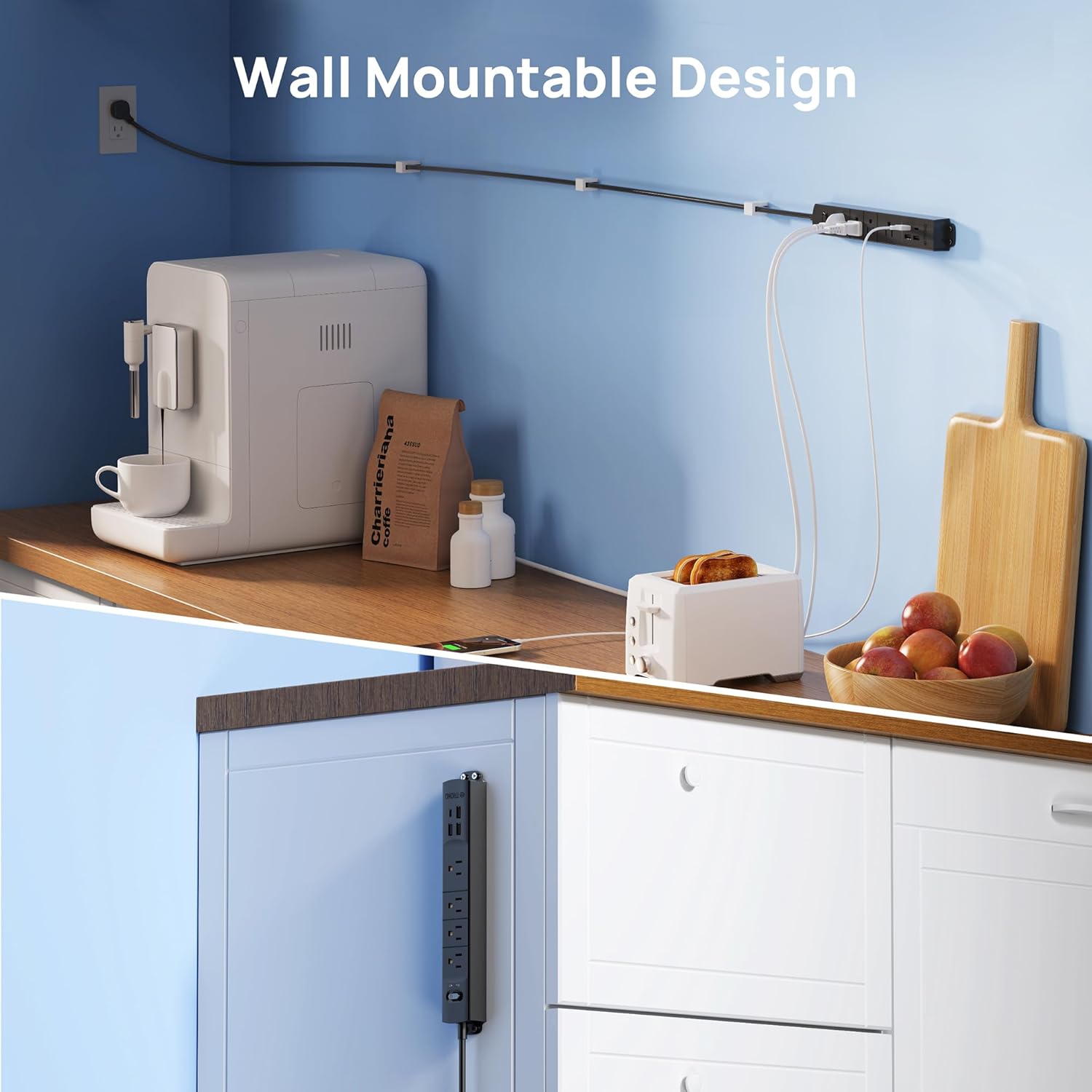 - Ultra Flat Plug & Wall Mountable: The low-profile right angled flat plug design is great for stashing under or behind furniture. Four screw-mounting tabs allow this wall mount flat plug power strip to be securely installed on workbenches, behind the tv, garage, bedside, under counters/desks/cabinets, and dressers