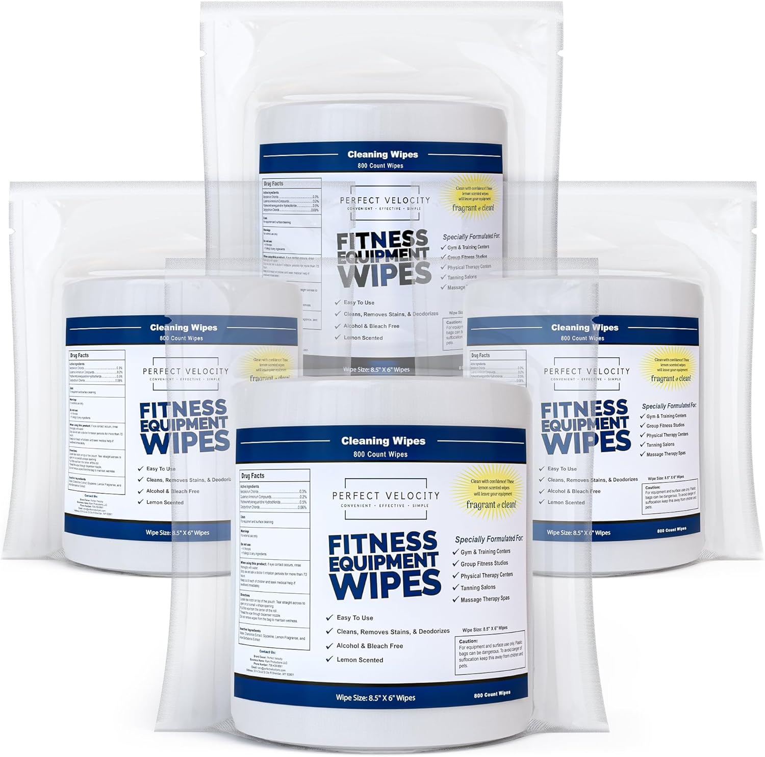 Fitness Gym Equipment Wipes - 4 Rolls of 800 Pre-Moistened Cleaning Refill Wet Wipes - For Upwards and Downwards Dispensers