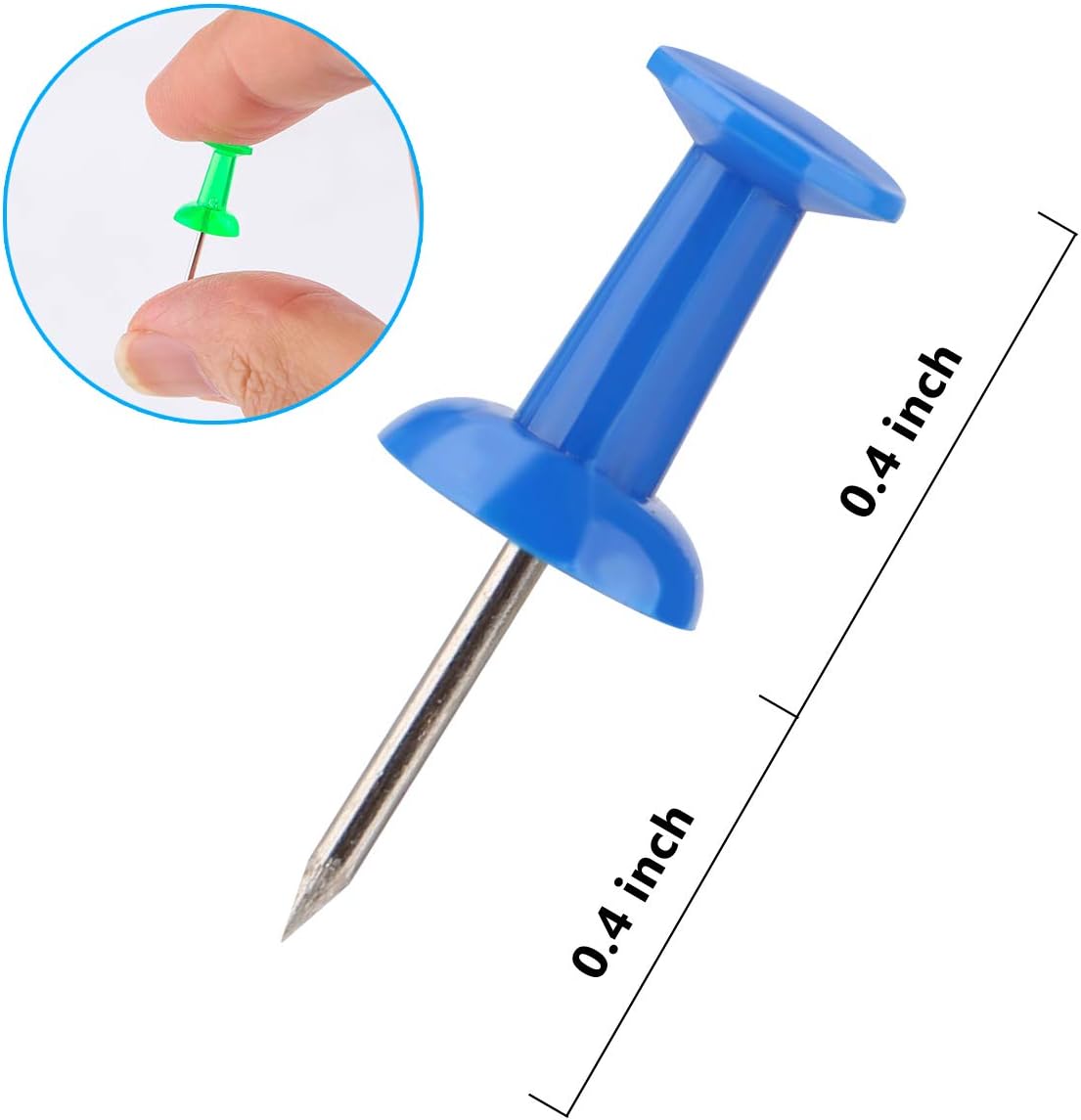 - Standard size push pins approx 1 inch, with multicolored pastic head and steel needle point