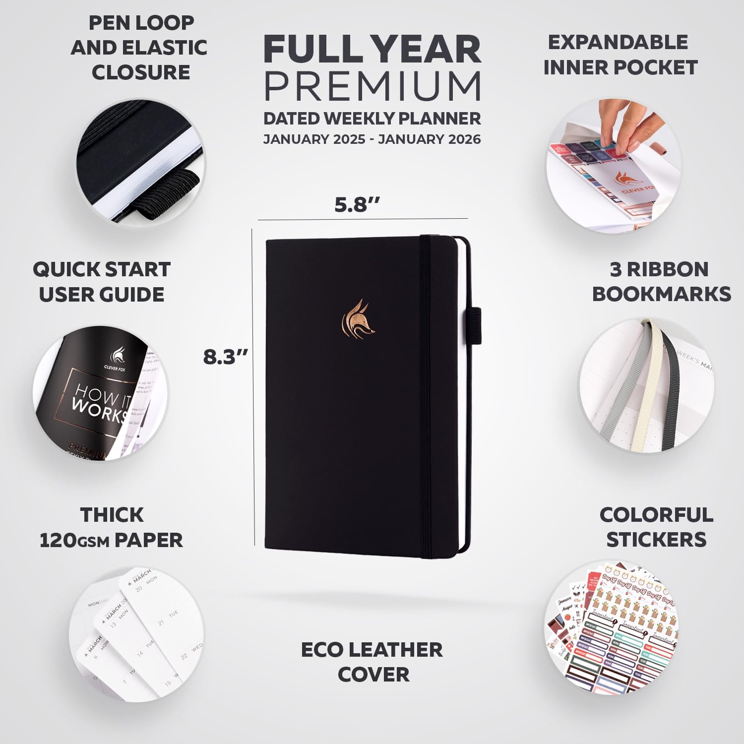 - ✓ JANUARY 2025-JANUARY 2026 PREMIUM DATED PLANNER – This Clever Fox Dated Planner for 2025 is part of our Premium Edition, featuring advanced planning sections, premium-quality materials, and exciting extras.
