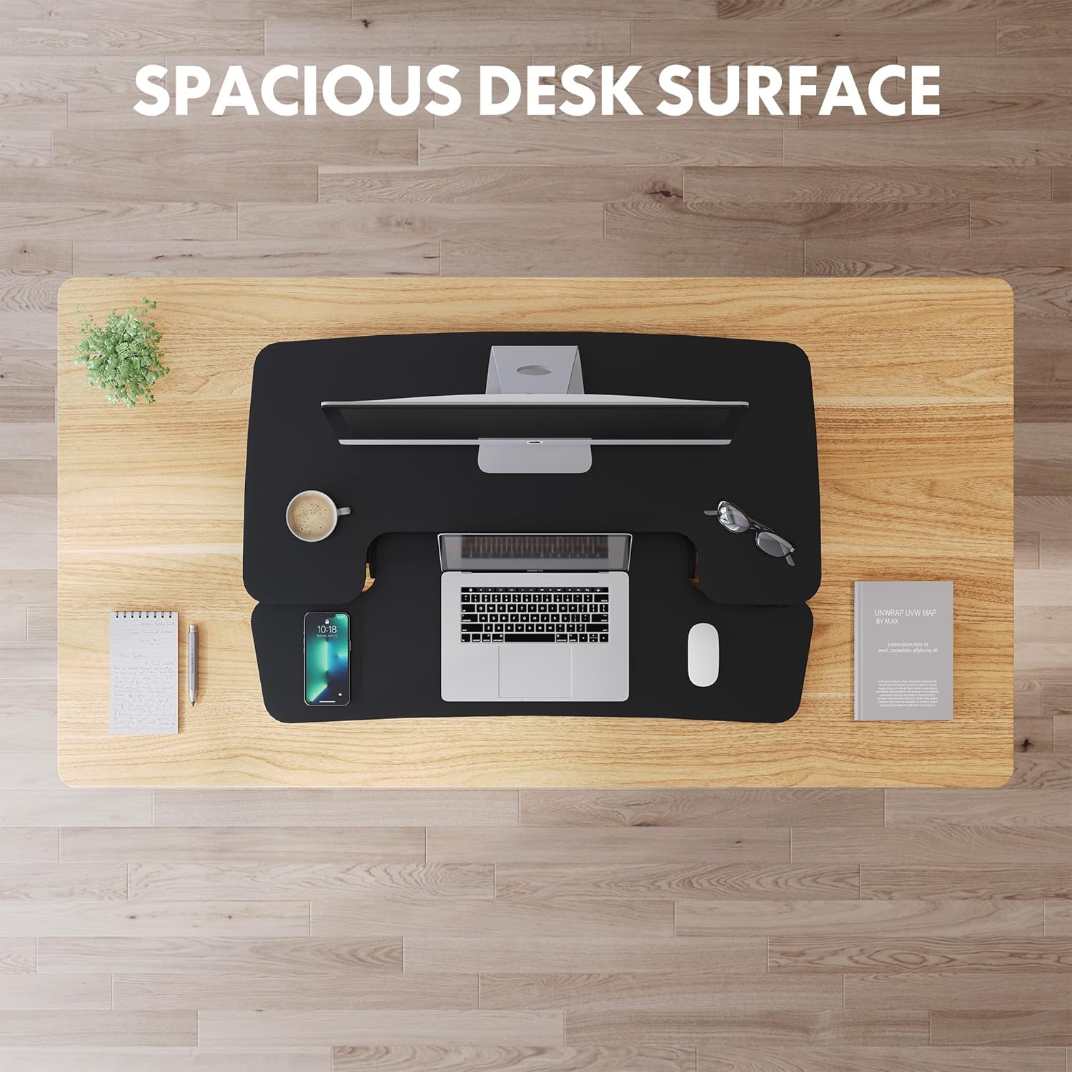 FLEXISPOT Electric Standing Desk Converter 36" Wide Motorized Stand up Riser for Monitor and Laptop, Black Height Adjustable Workstation for Home Office