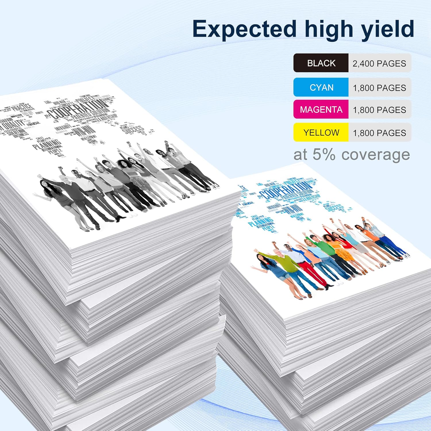 - High Page Yield:2,400 Pages black toner cartridge and 1,800 Pages color toner cartridge at 5% coverage.