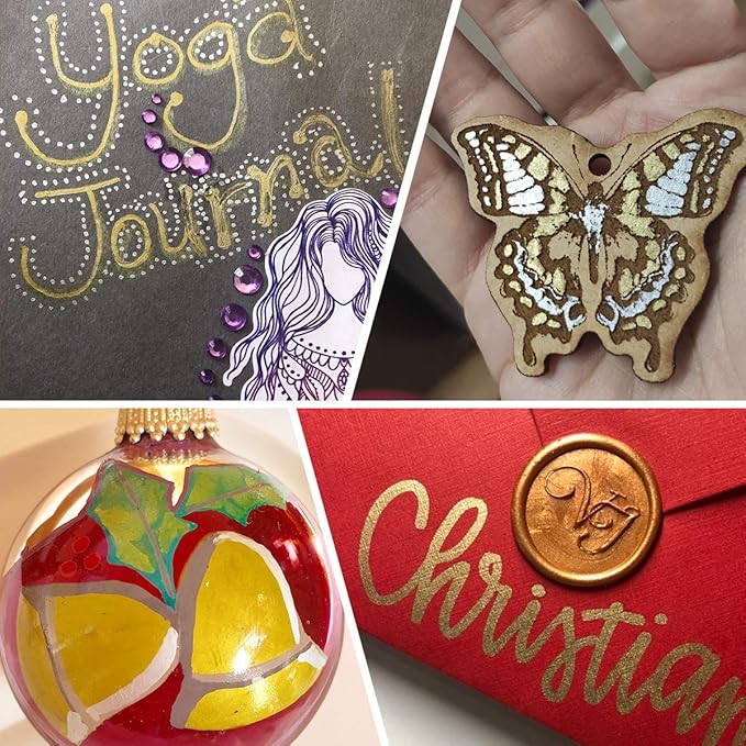 - 【High Quality and Safe】Package with 3 pcs Gold+3 pcs Silver color. Acrylic paint pens are made with high quality abundant oil ink, High purity color, strong covering force,waterproof, fade proof, non-bleeding. non-toxic, no odor, no strong smell. Conform to ASTM D-4236 & EN71-3.