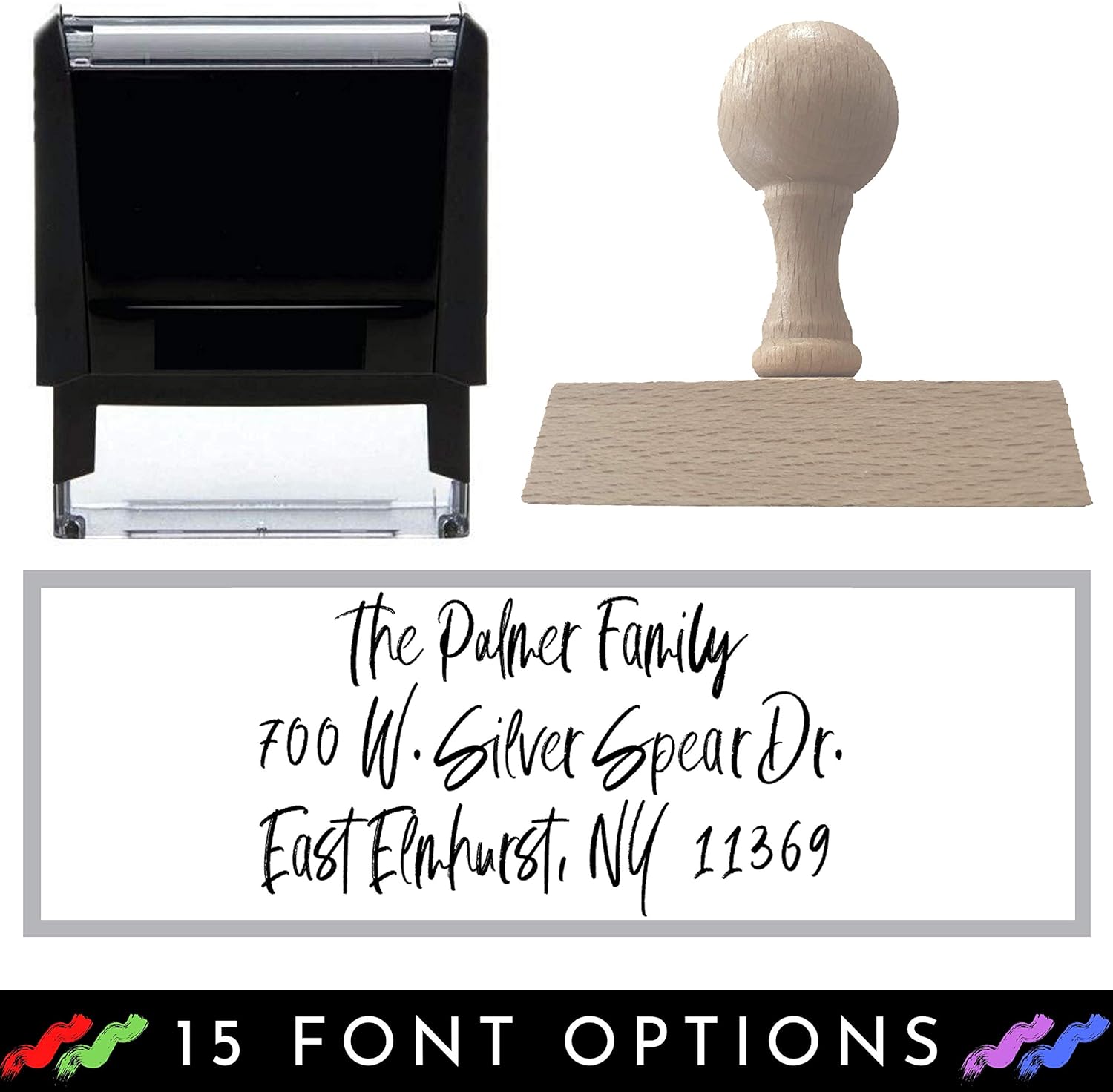 Custom Stamp - 20 Font Options - Name Stamp - Return Address Stamp - Up to 3 Lines Wood Handle or Self-Inking (3/4" x 1-7/8")