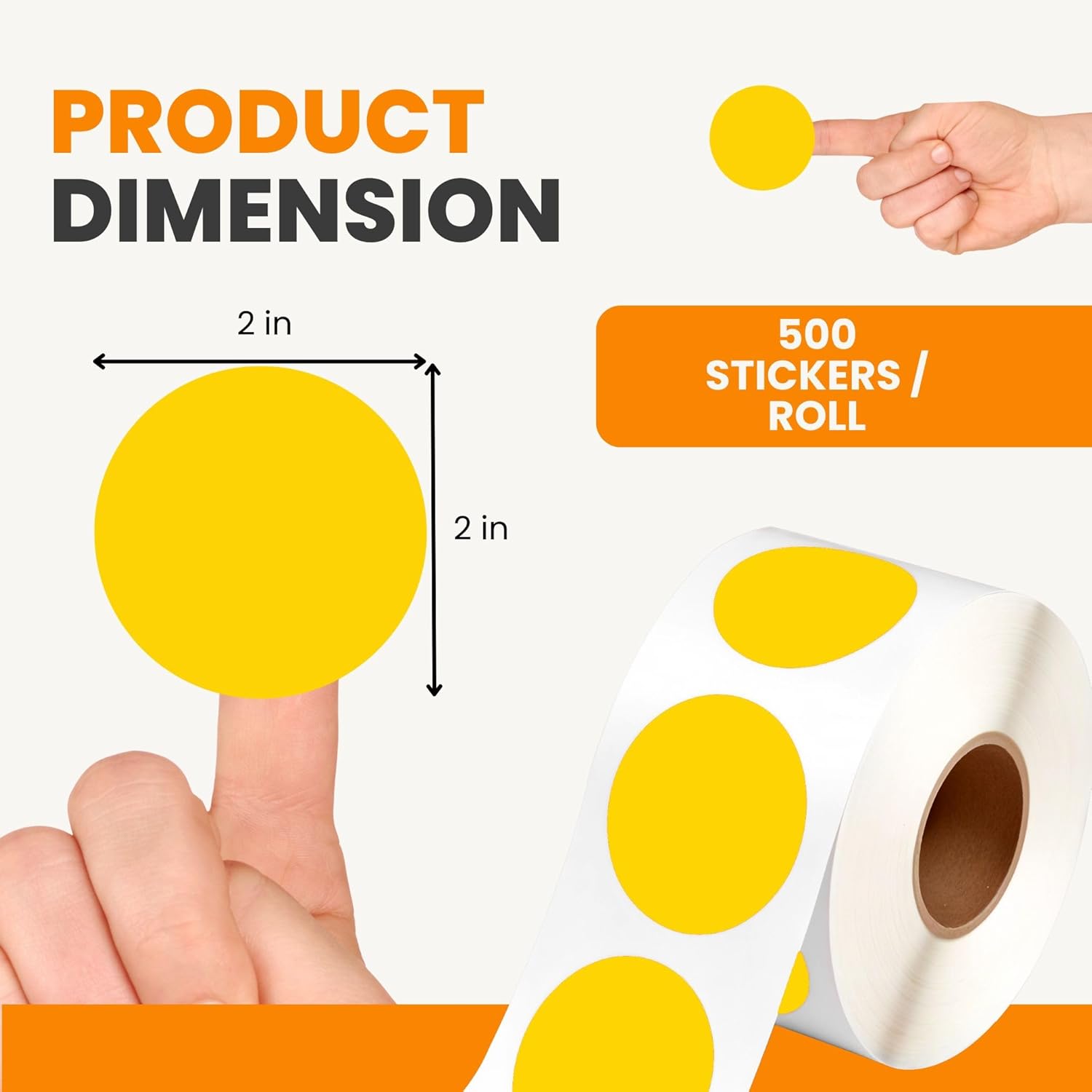 Performore 2 Inch Dot Matte Yellow Color Code Labels for Color Coding and Organization, Round Coloured Easy to Peel, Strong Self Adhesive Dot Stickers, 500 Stickers Per Roll
