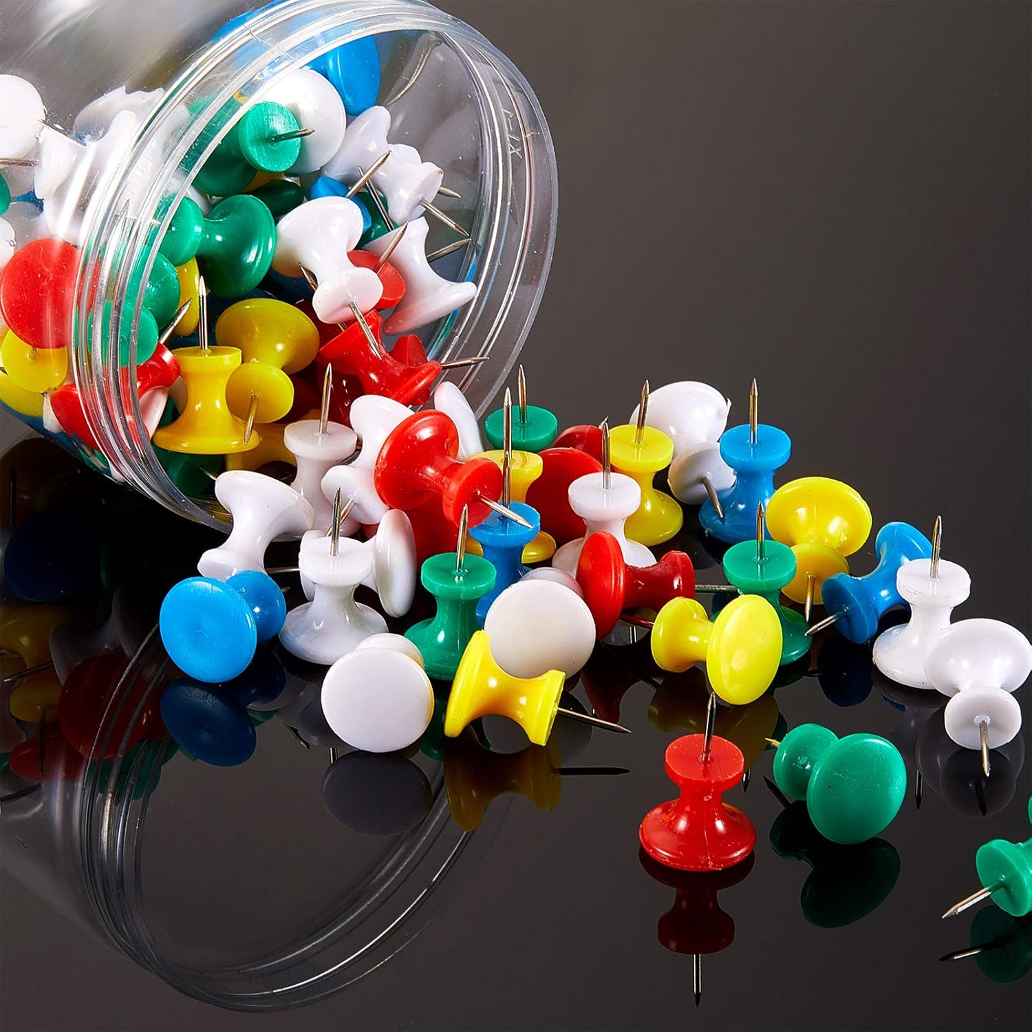 Outus 100 Pcs Giant Push Pins Large Thumb Tacks Plastic Heads 1 Inch Jumbo Push Pins for Cork Board Map Posters Office School(Red, Yellow, Blue, Green, White)