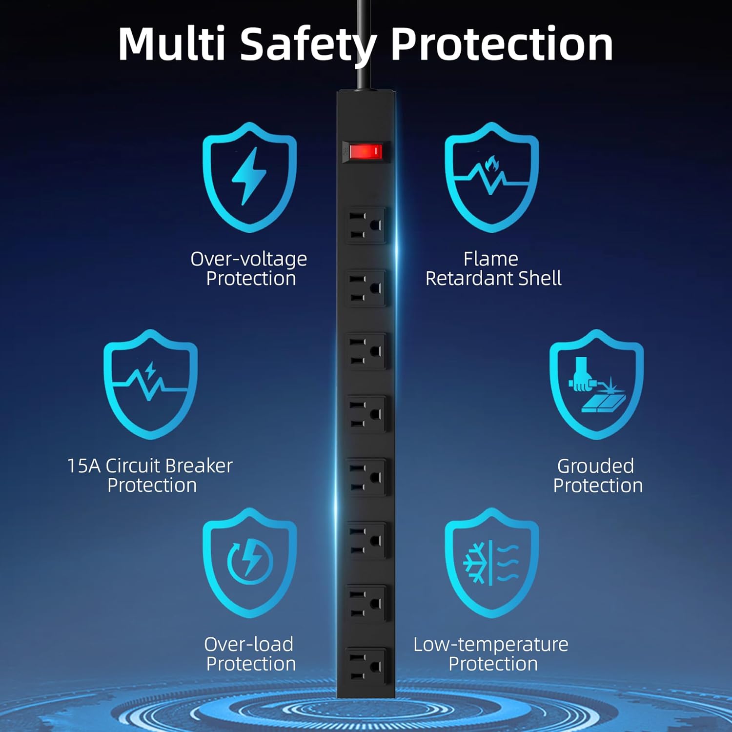 - MANY CHOICES:Heavy duty power strip with a variety of combinations of different number of jacks and different cord lengths to choose from. It meets all kinds of needs in life, and is very suitable for home, office, industrial, workshop, store and so on.