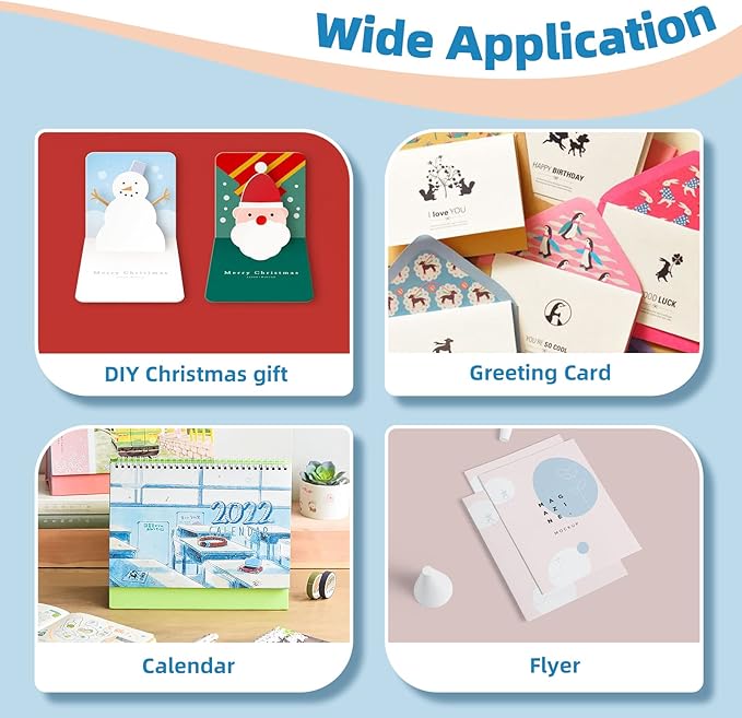 - USED FOR : Unfold greeting cards, Photos, Photo Albums, Arts, Menu Printing, Calendars, Brochures, Flyers, Posters,Christmas Cards ,Wedding Cards, etc value packed for your business and home use