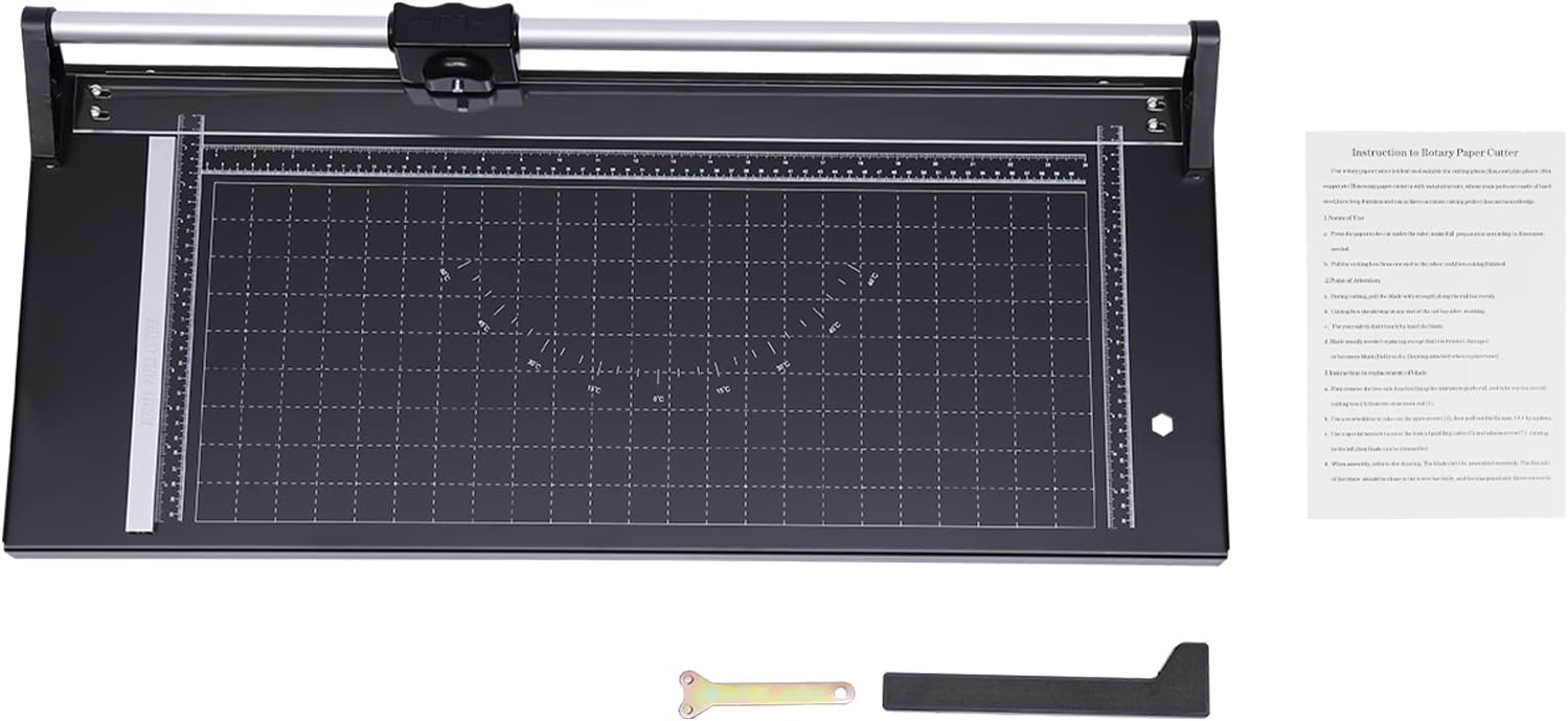 24 Inch Commercial Manual Precision Rotary Paper Trimmer Cutter,Heavy Duty,Smart Cut for Photo Paper, Film, Art Paper Jam, Office Paper, Thin Plastic Soft Board, PVC,Cutting Table 80x31.5cm