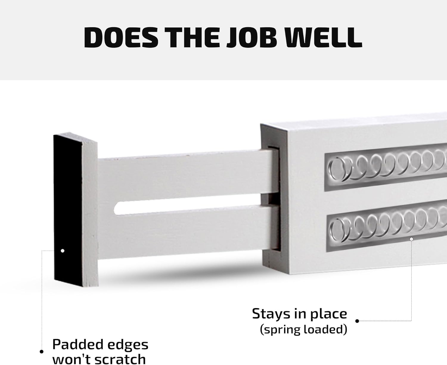 - Easy to Use with Added Protection: Simply slide the divider into place in any kitchen, bedroom, office, or bathroom drawer. Equipped with EVA foam padding, it protects your drawers from scratches and ensures the divider stays securely in place without slipping. Achieve organized storage in seconds, with the flexibility to remove or reposition as needed.