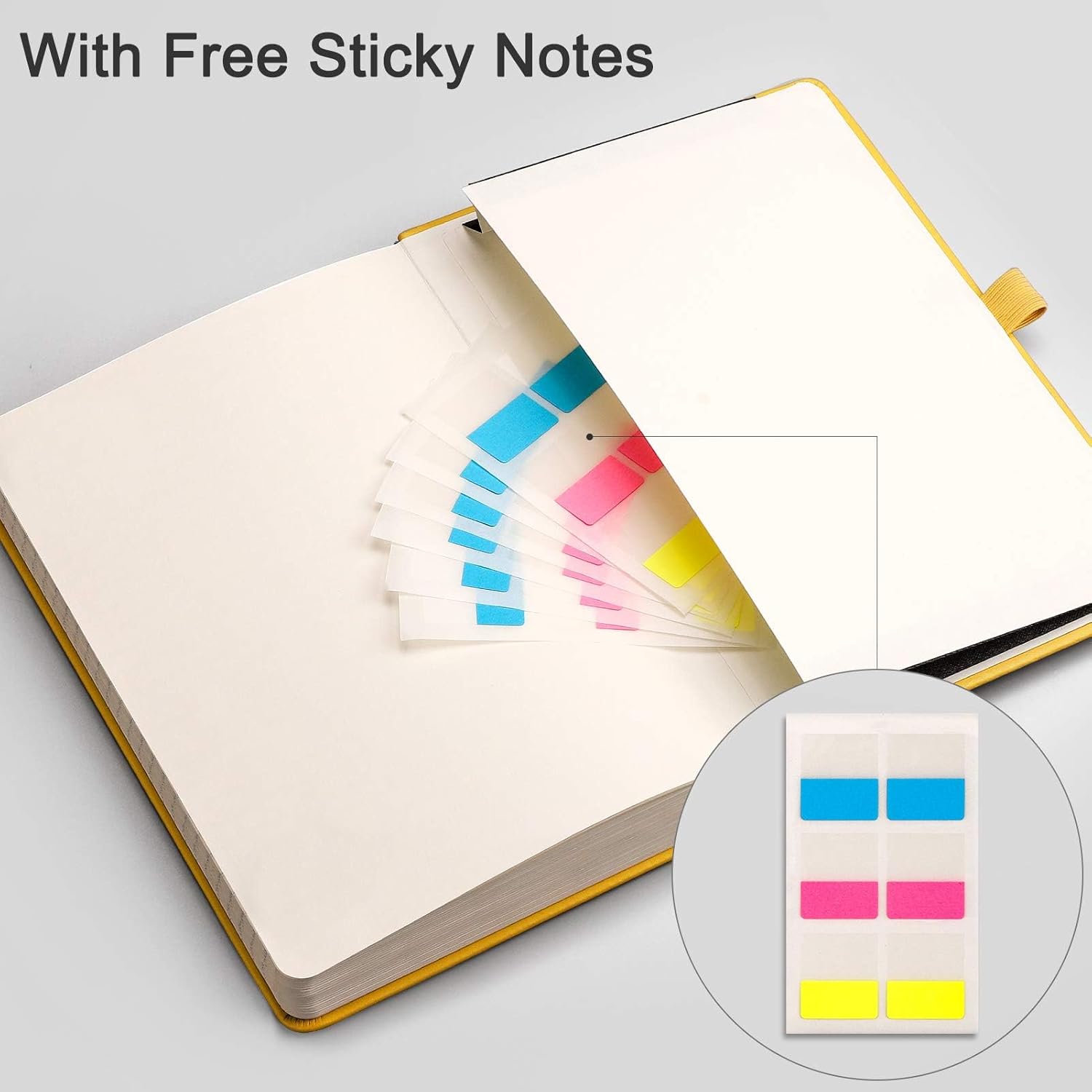 EMSHOI College Ruled Notebook 120gsm Thick Lined Journal - 256 Numbered Pages, A5 Hardcover Leather Writing Notebook for Work, School, Travel - with Sticky Notes, 5.75"x8.38", Yellow