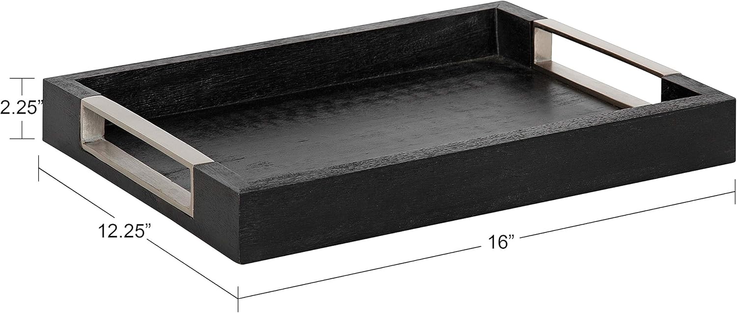 Kate and Laurel Heller Modern Rectangular Tray, 12 x 16, Black, Wood Tray for Storage and Display