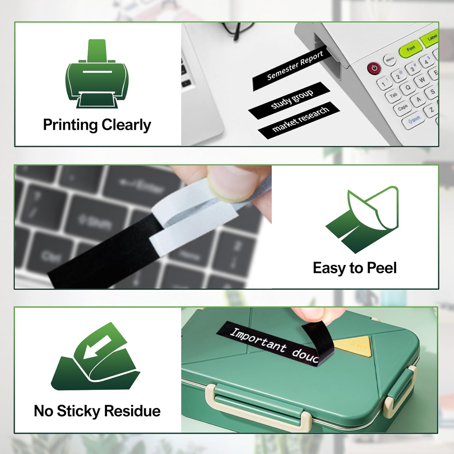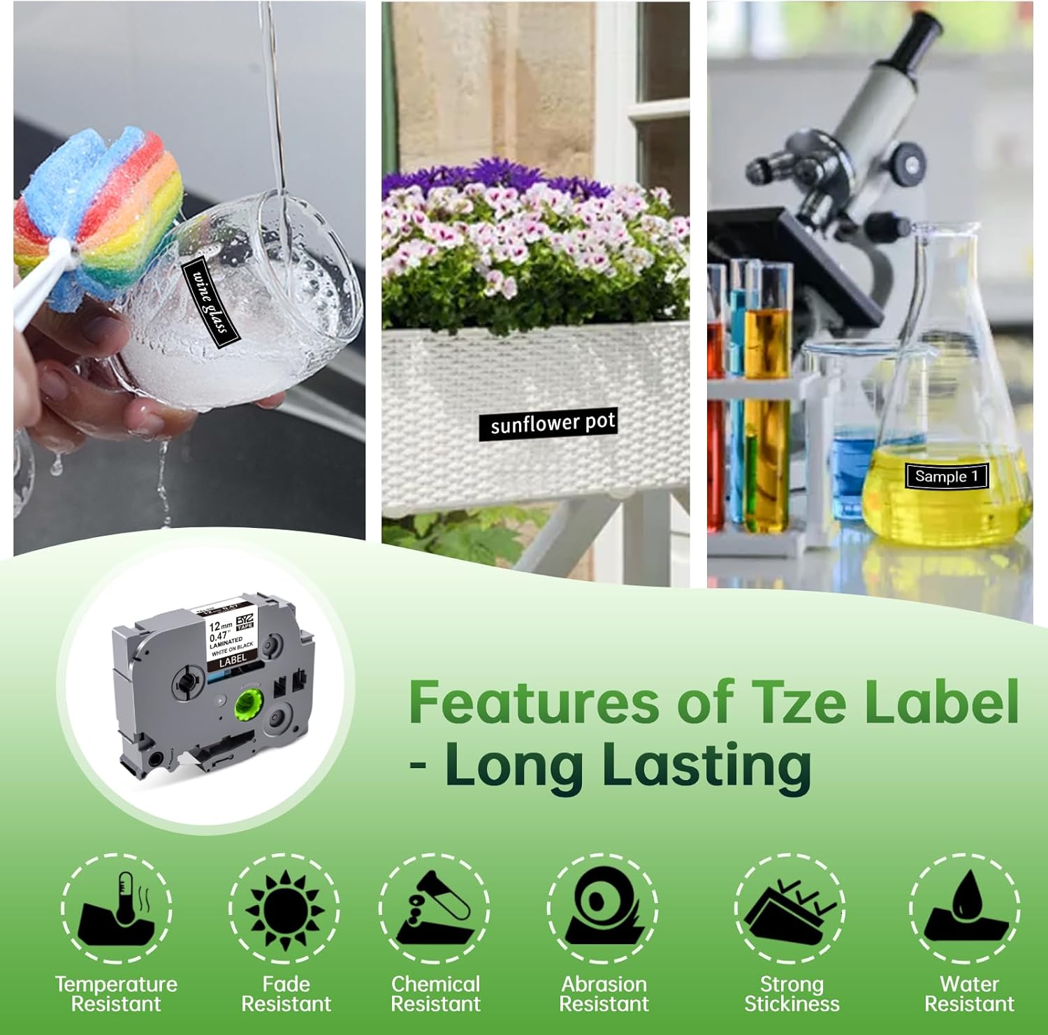 - Widely Application: TZe-335 12mm 0.47 laminated black label maker tape can be used for indoor and outdoor applications including home, business, kitchen, restaurant, office, school, factory, bank, store, laboratory and more.
