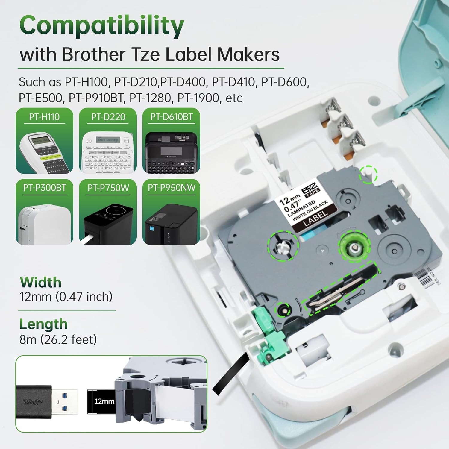 - Perfectly Compatible with Brother P Touch label printers that use TZ TZe label tapes: PT-H100, PT-D210, PT-D220, PT-D200, PT-H110, PT-D400, PT-D400VP, PT-D600, PT-D400AD, PT-D610BT, PT-D410, PT-D460BT, PT-D600VP, PT-P710BT, PT-H100, PT-P750W, PT-1230PC, PT-1280, PT-1290, PT-1880, PT-1900, PT-D450, PT-E500, PT-2730, PT-H500LI, PT-2430PC, PT-1280BT, PT-1880C, PT-1890C, PT-2030, PT-1000, PT-1090, PT-1180, PT-1190, PT-1280SP, PT-1400, PT-1500, PT-1600, PT-1750, PT-1800, PT-1810, PT-1830, PT-18R, PT-1900 and more